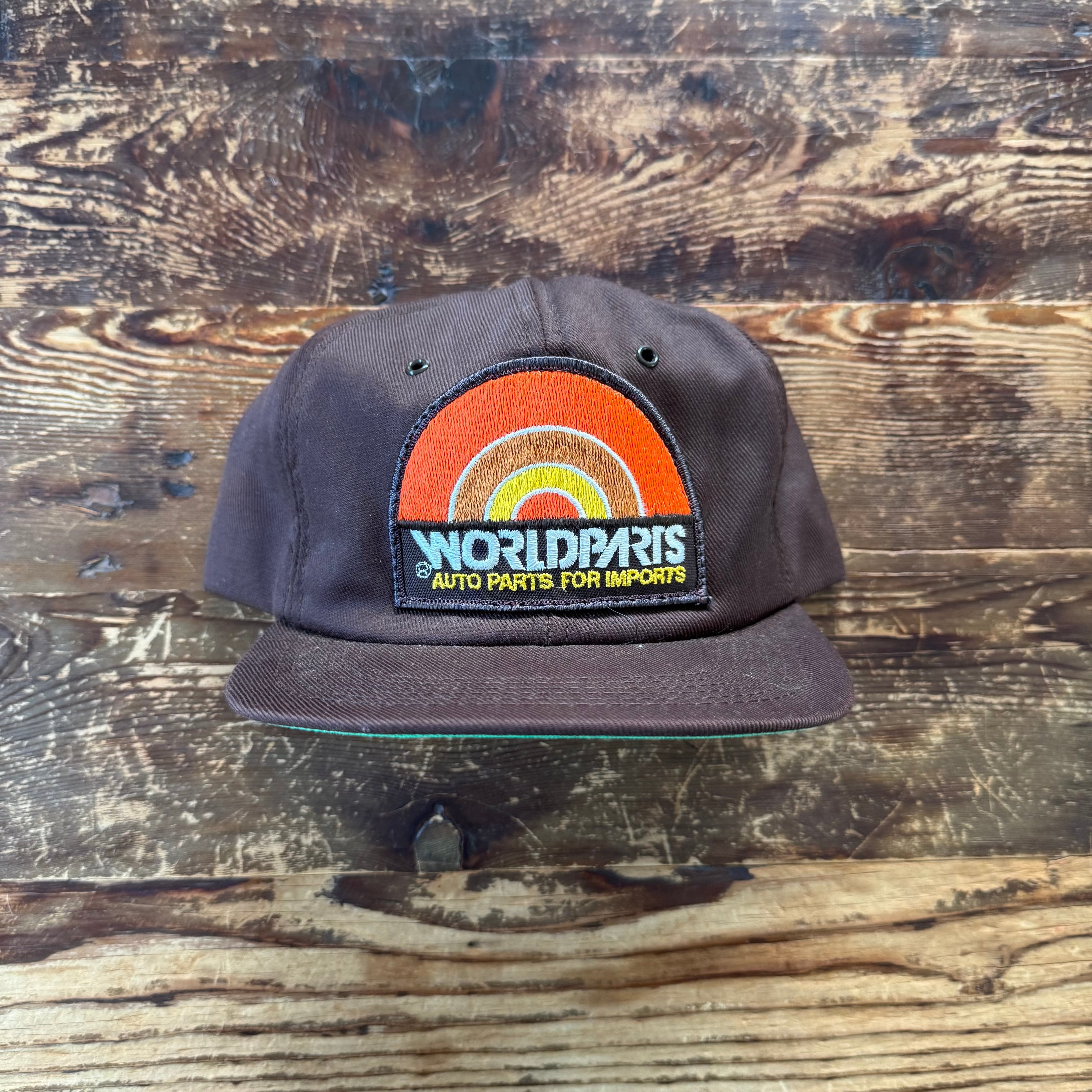 1970s DEADSTOCK "WORLD PARTS" Automotive Trucker Hat/Brown