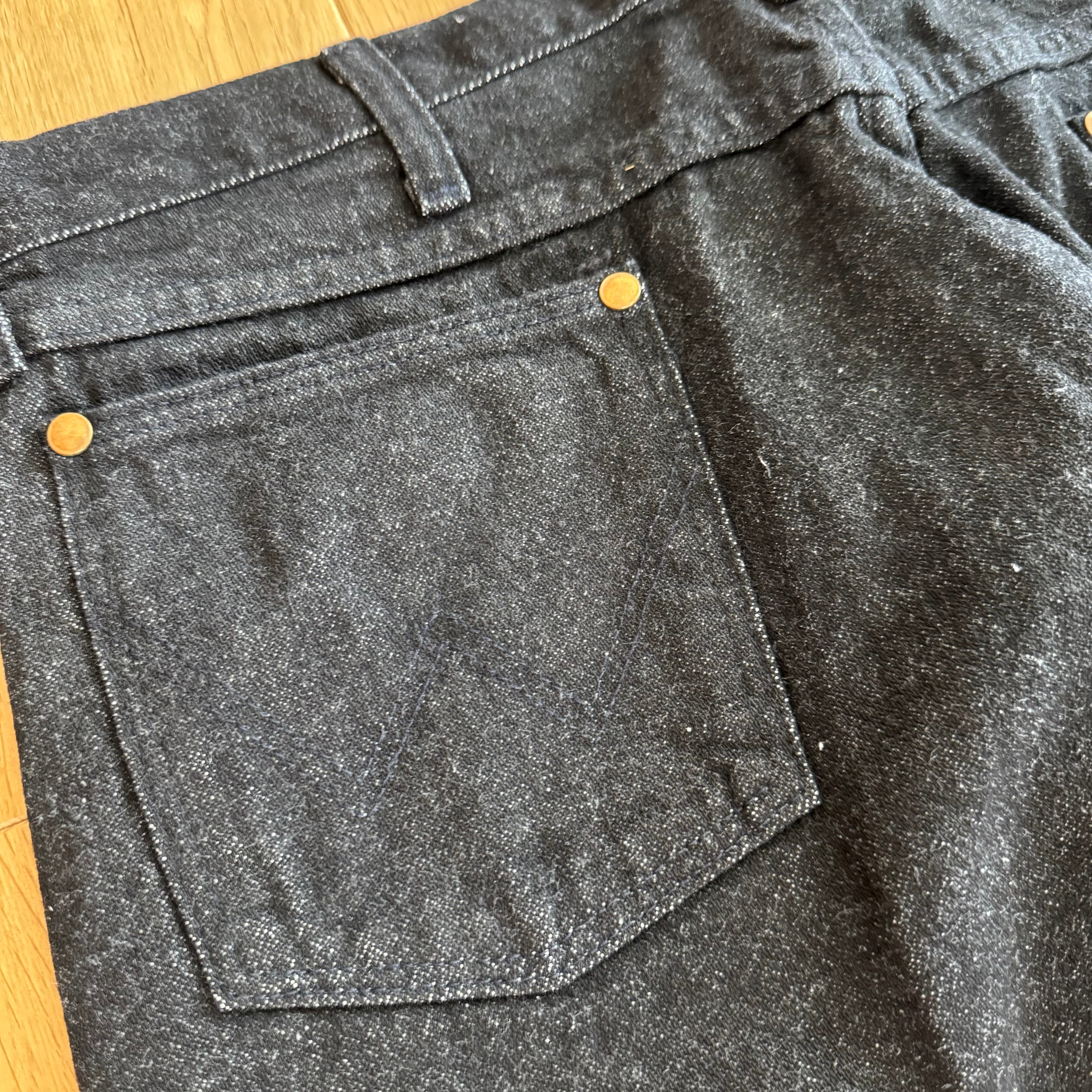 表情豊かなエイジングを見せる先染めブラックデニムは