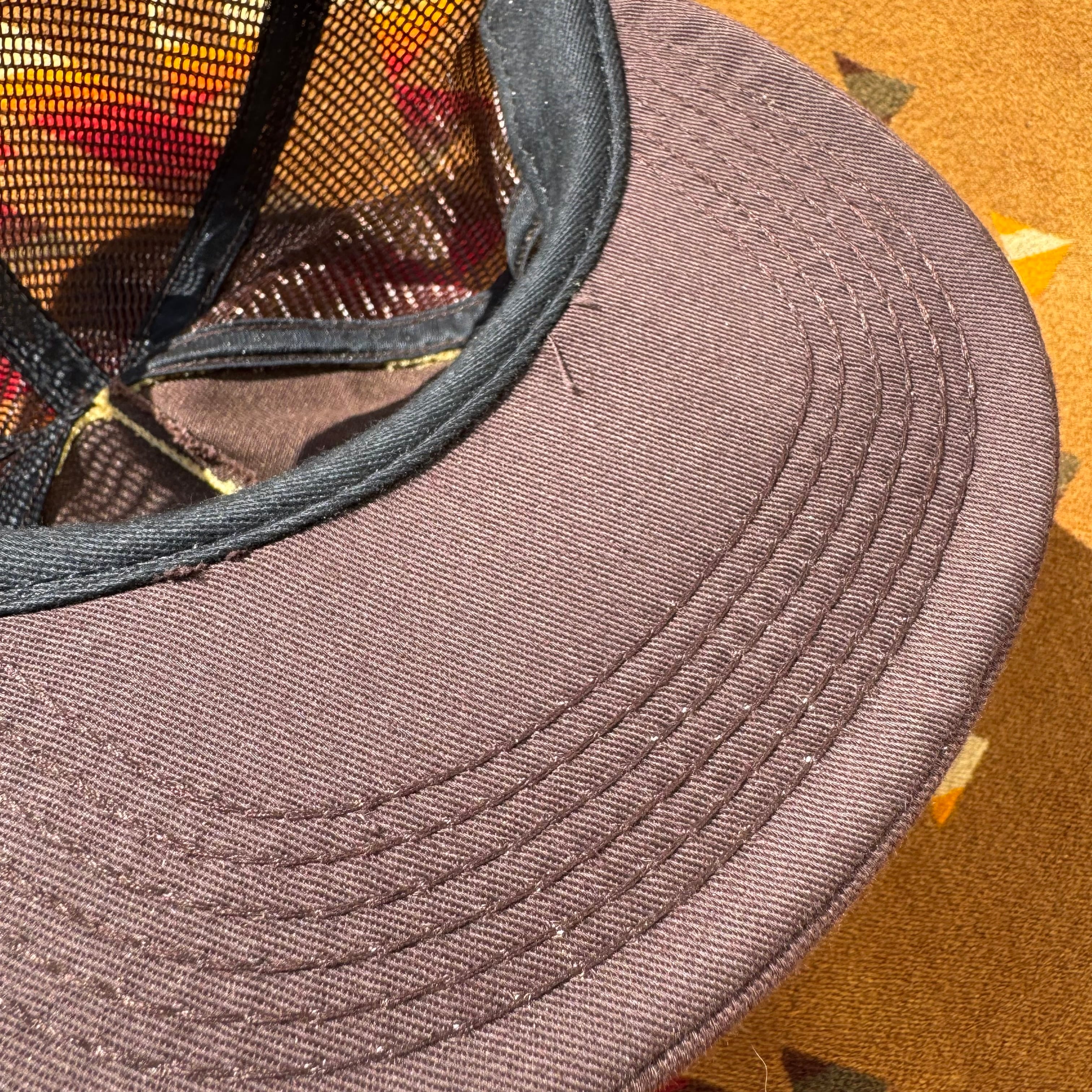 深めのフォルムでクラシカルな6パネルのツイルとメッシュのコンビ素材、バイザー裏のチェーンステッチも泣かせますね〜。