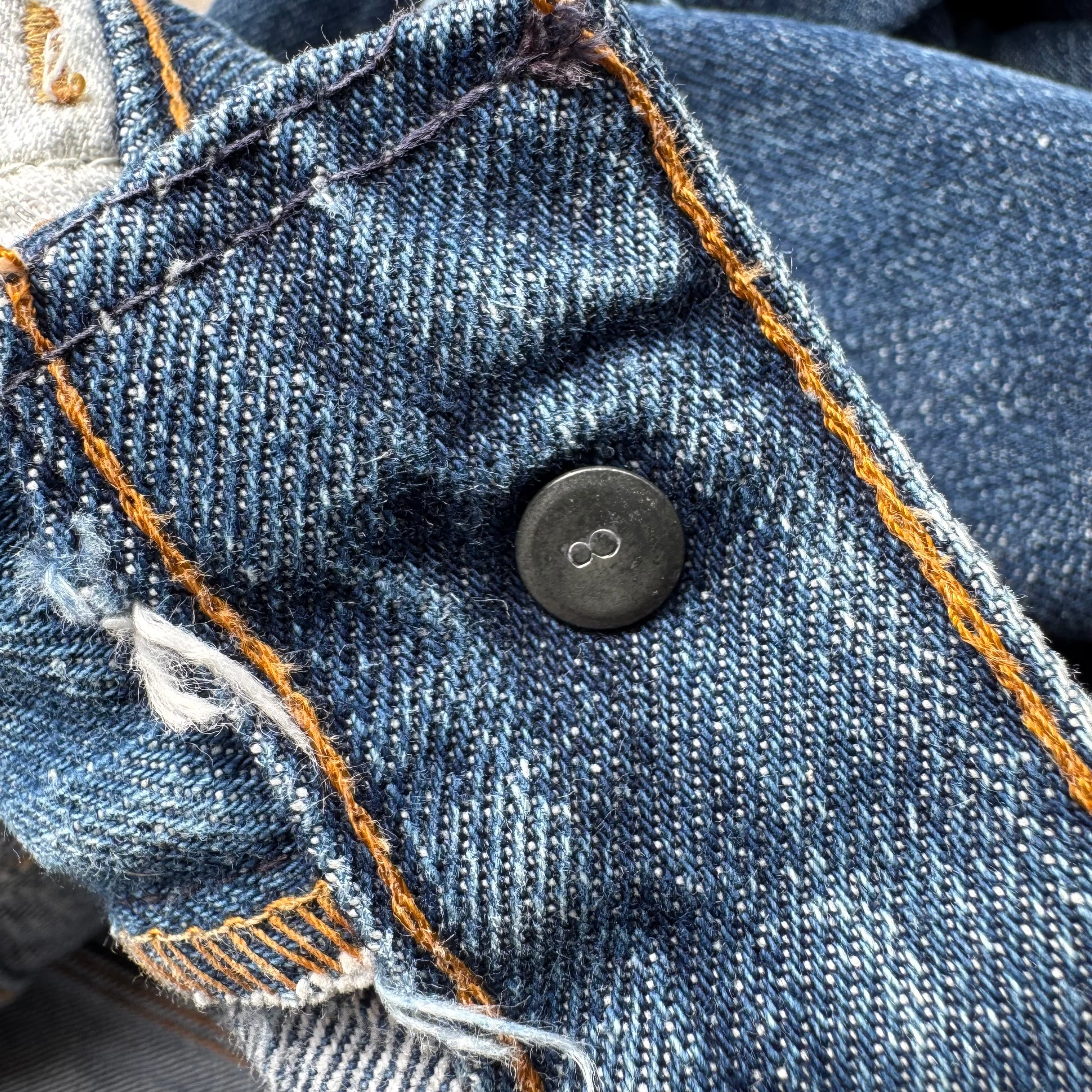 この時代の『0217』デニムらしい縦落ち感が強く出たブルーで