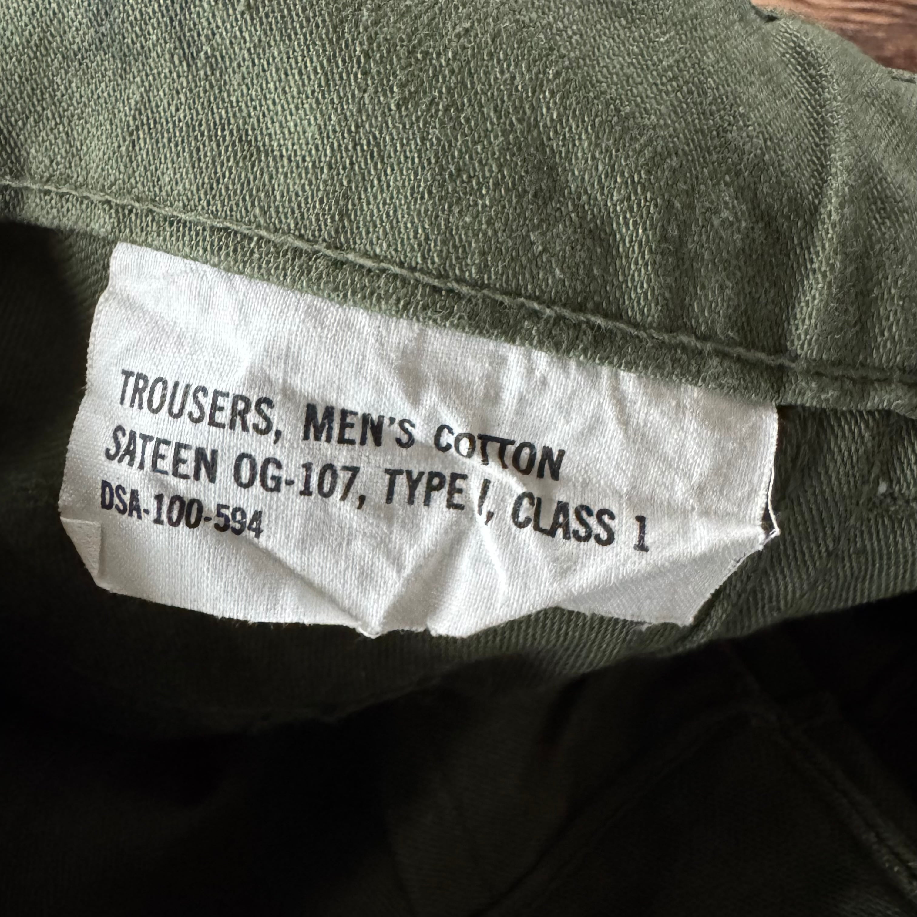 1960s U.S. Military Cotton Sateen “OG-107” Utility Trousers.W34
