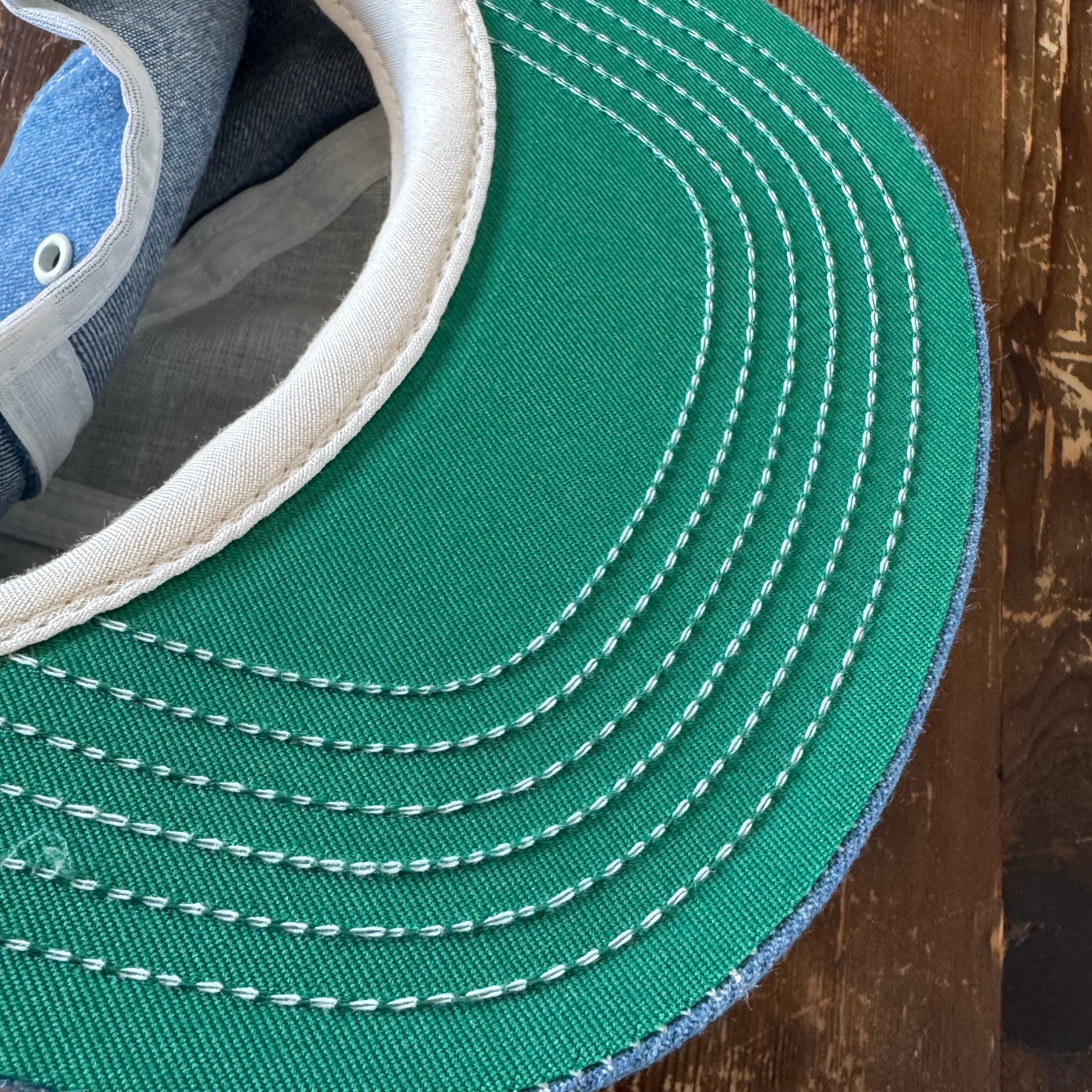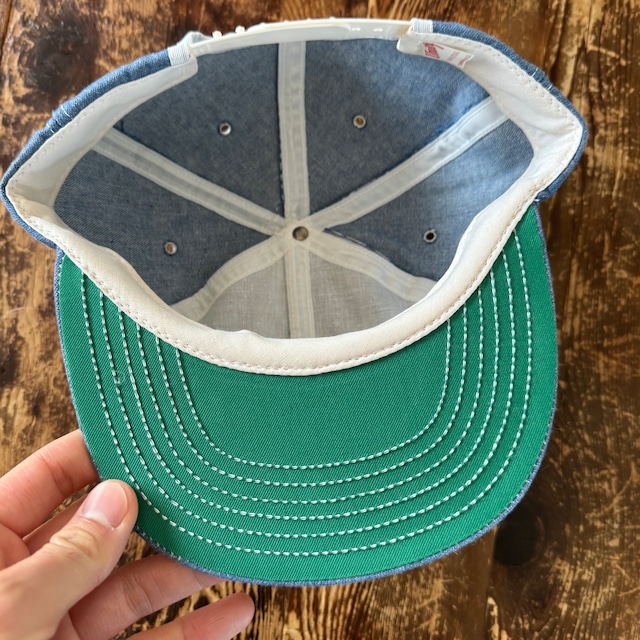 同じ時代のSwingsterやK-Brandのデニムと比較して厚めのしっかりしたオンスのデニムが使われているのがいいですね。バイザー裏のグリーンにチェーンステッチや細部のディテールからも、昔ながらのも味わいを感じられる気がします。
