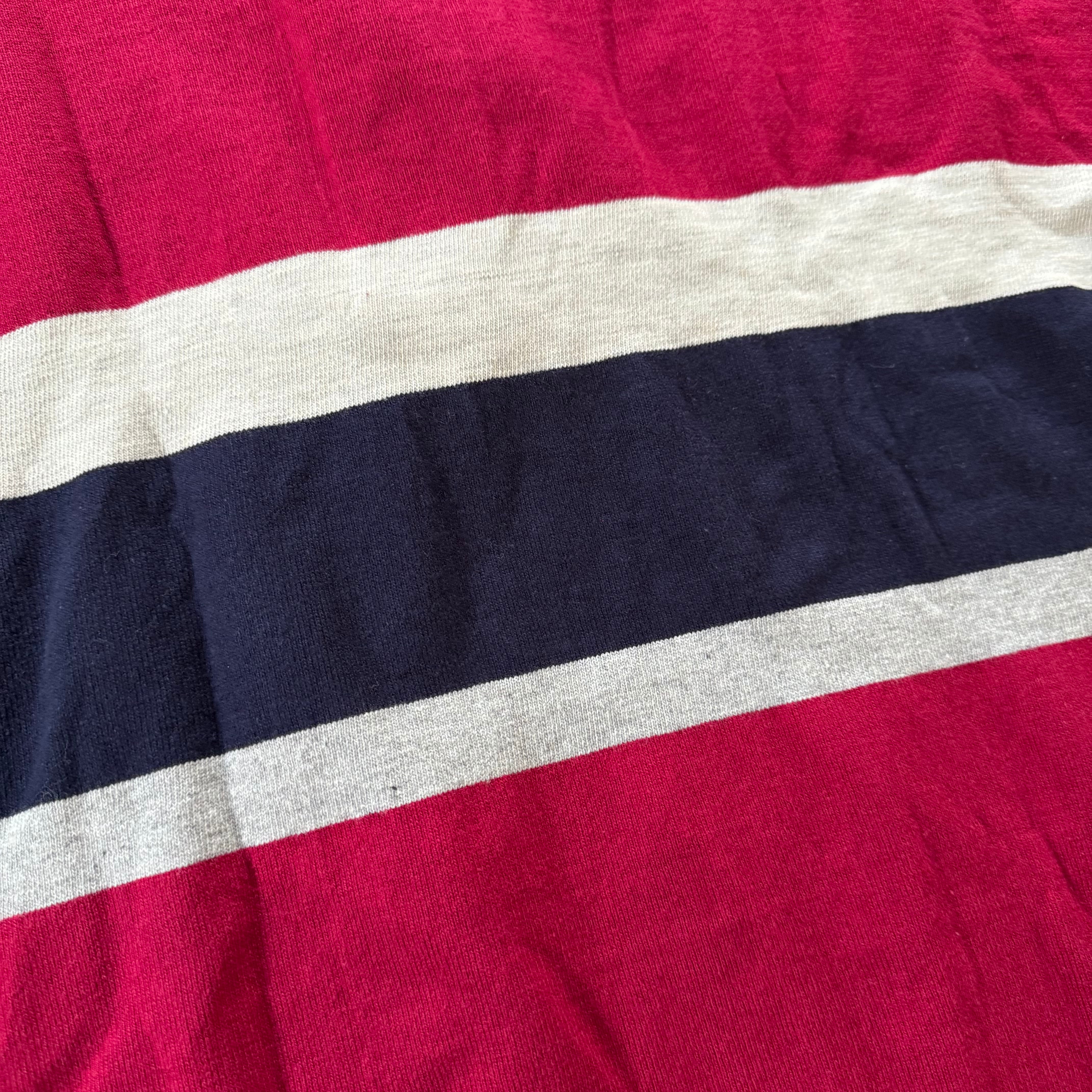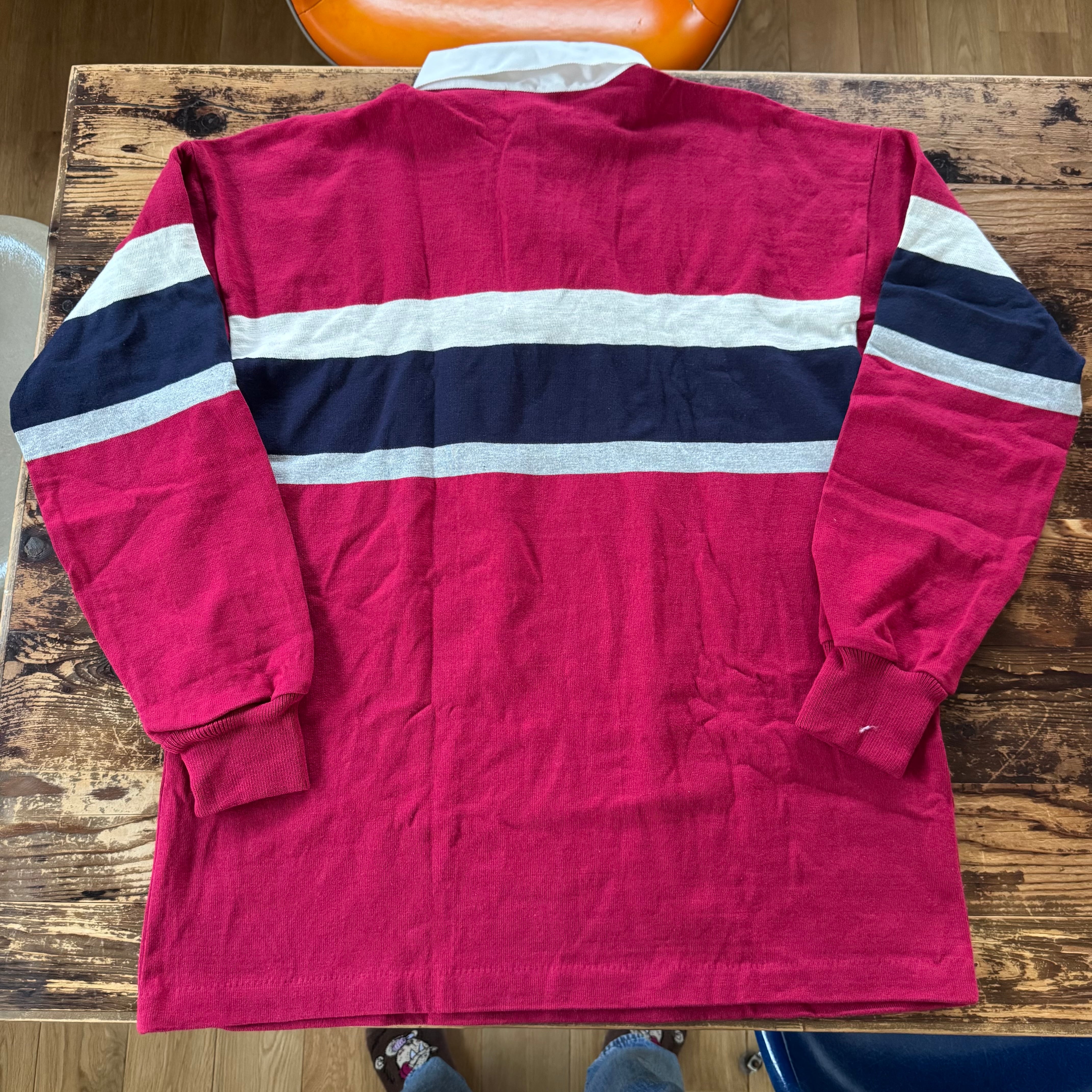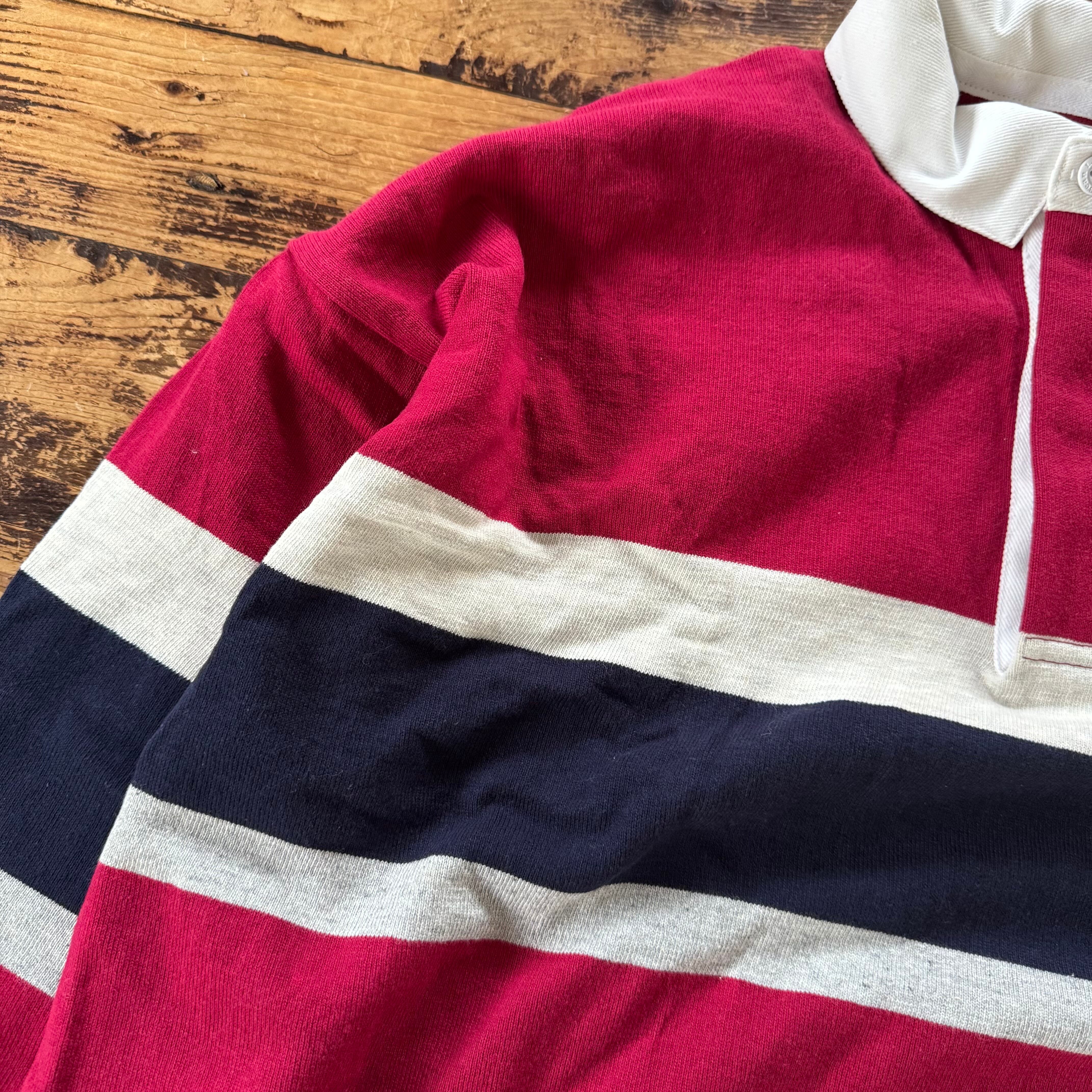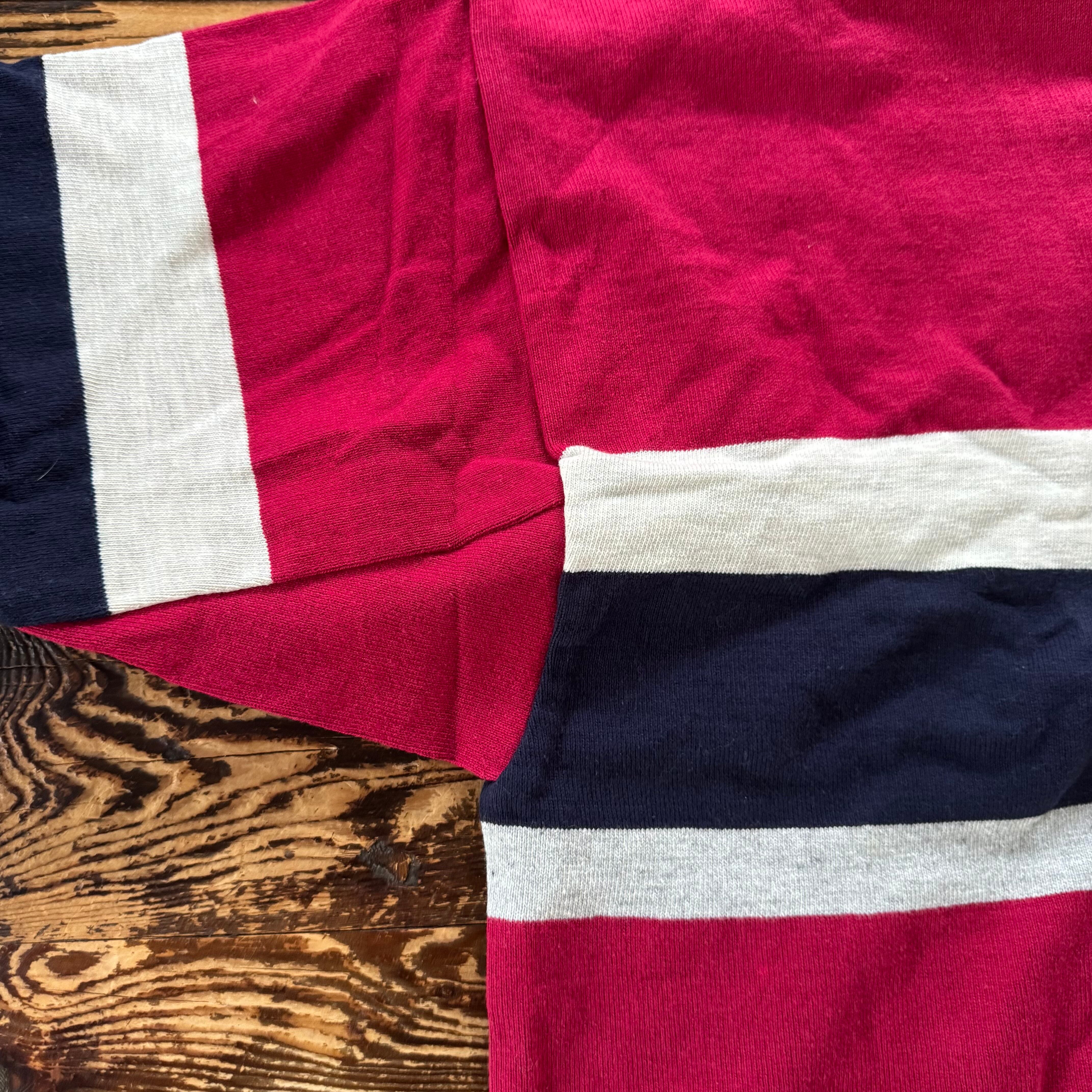 1980's DEADSTOCK L.L.Bean Striped RUGBY SHIRT Made in USA/Raspberry x Navy/L