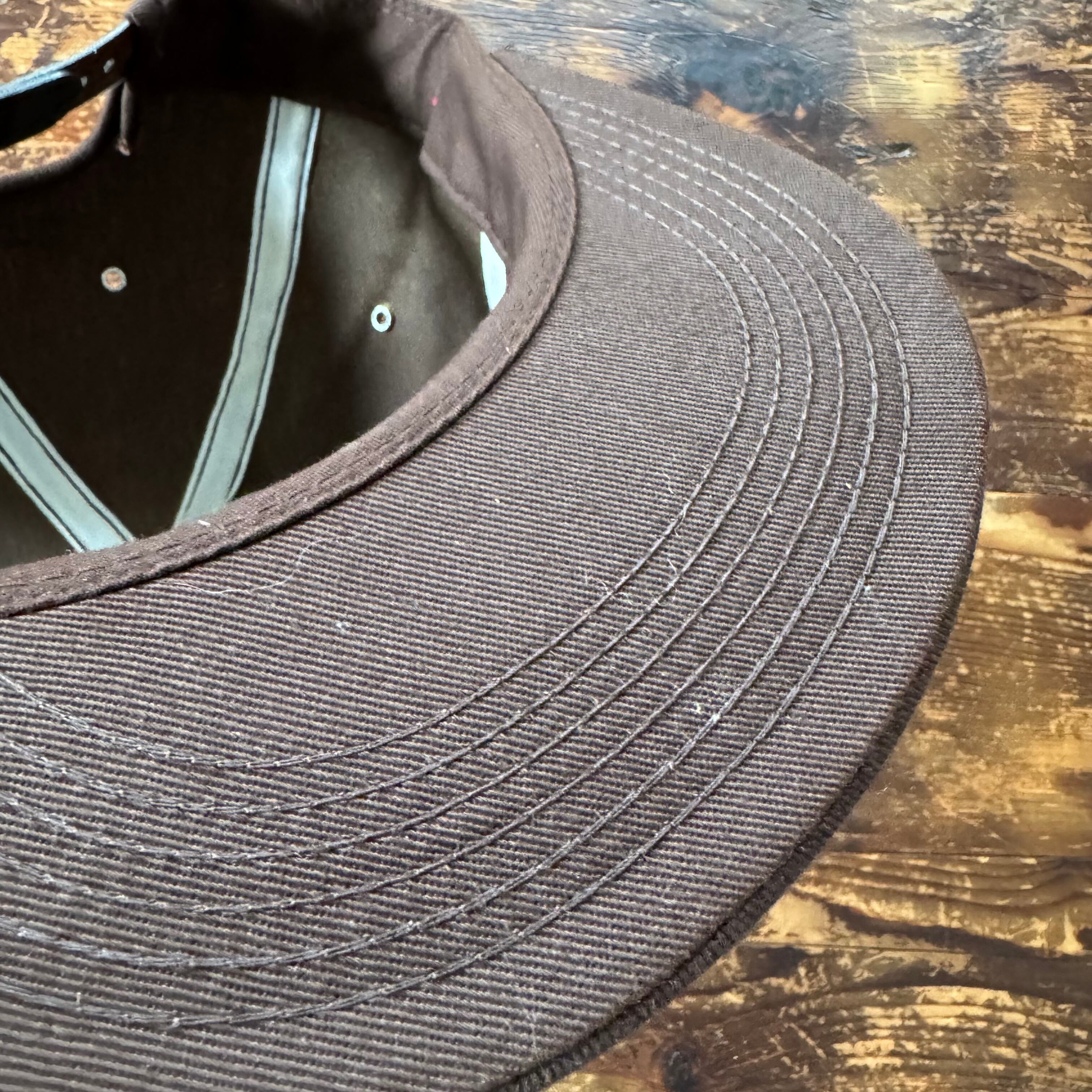 バイザー裏のチェーンステッチなど