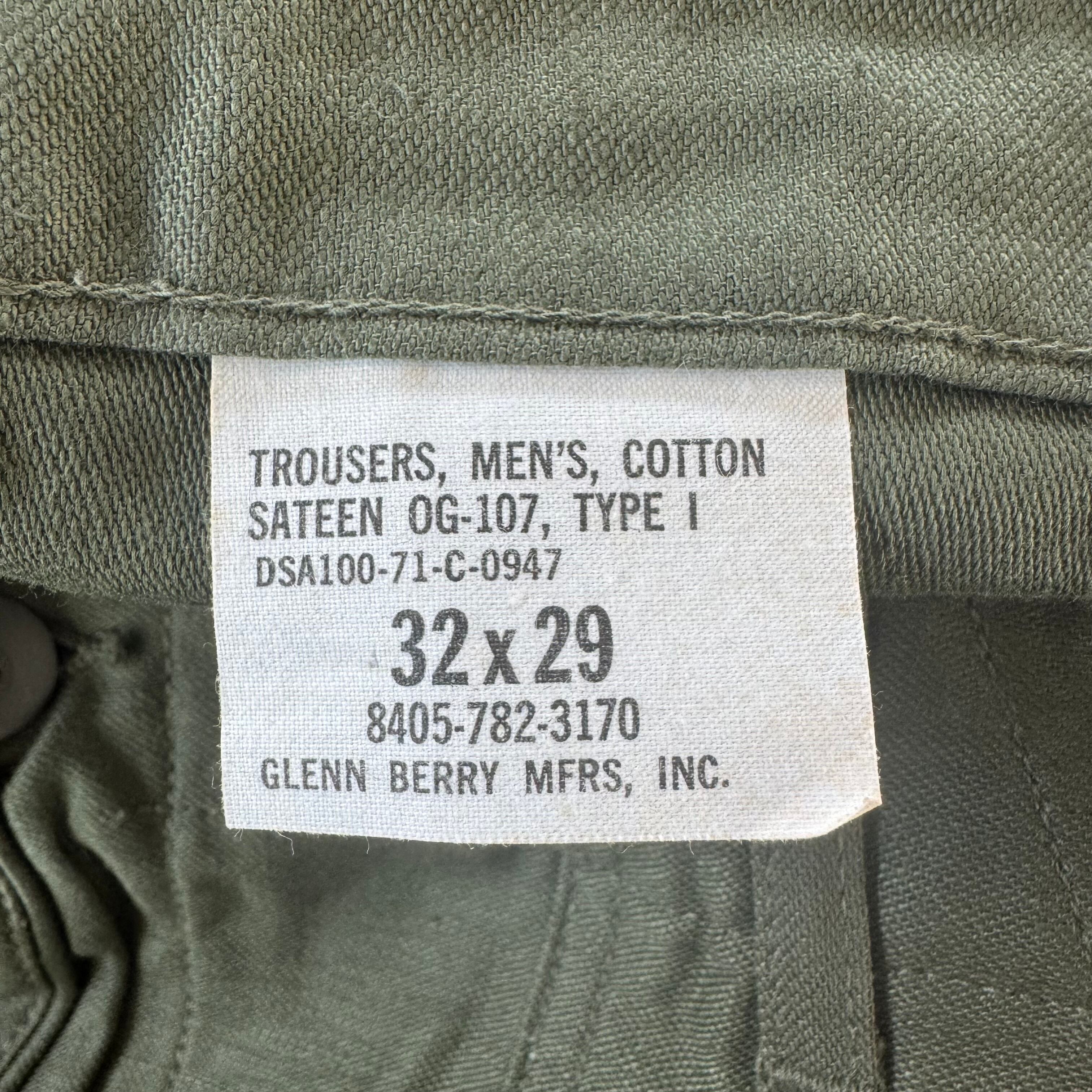 1971y U.S. Military Cotton Sateen “OG-107” Utility Trousers.W32
