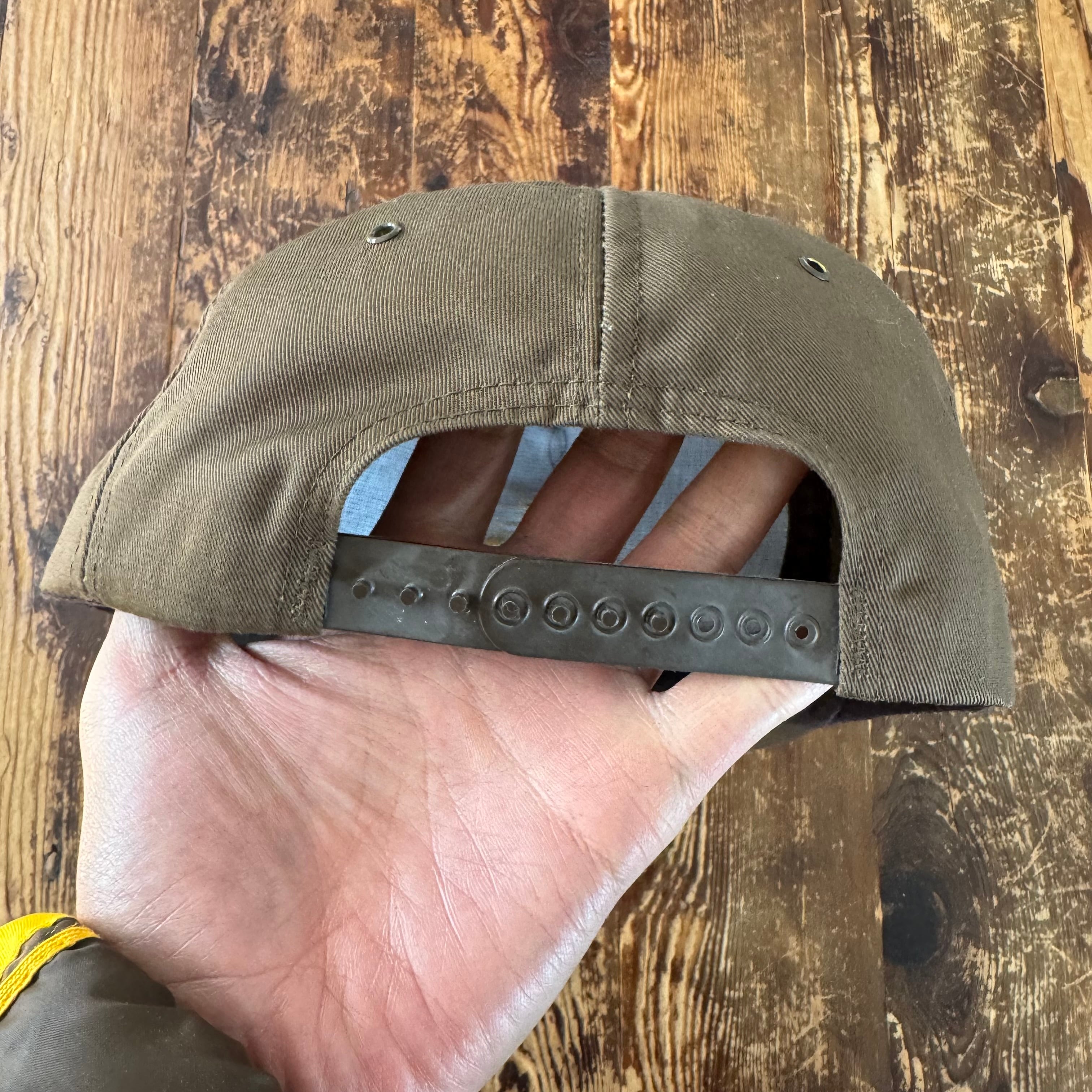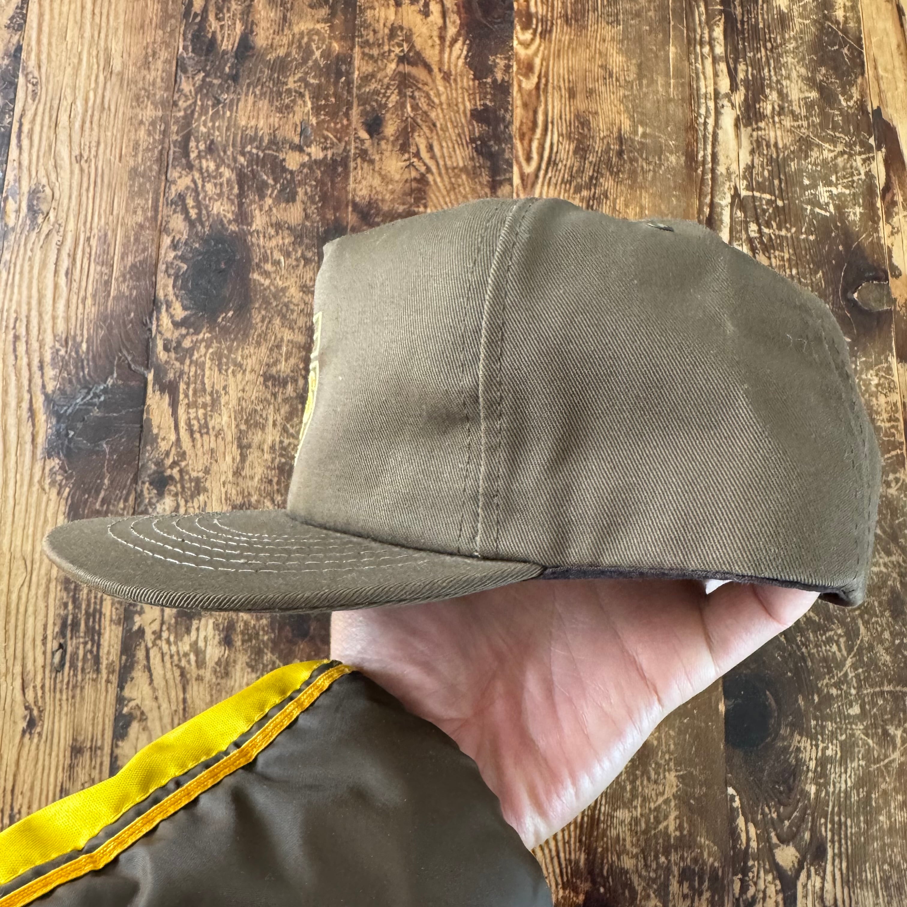 帽子そのものは『Made in USA』のみスナップバックに刻印されたタイプで製造会社は定かではありませんが、素材感、作りからこの時代のUPSのOEM先、最大手Riverside社あたりでしょうか。