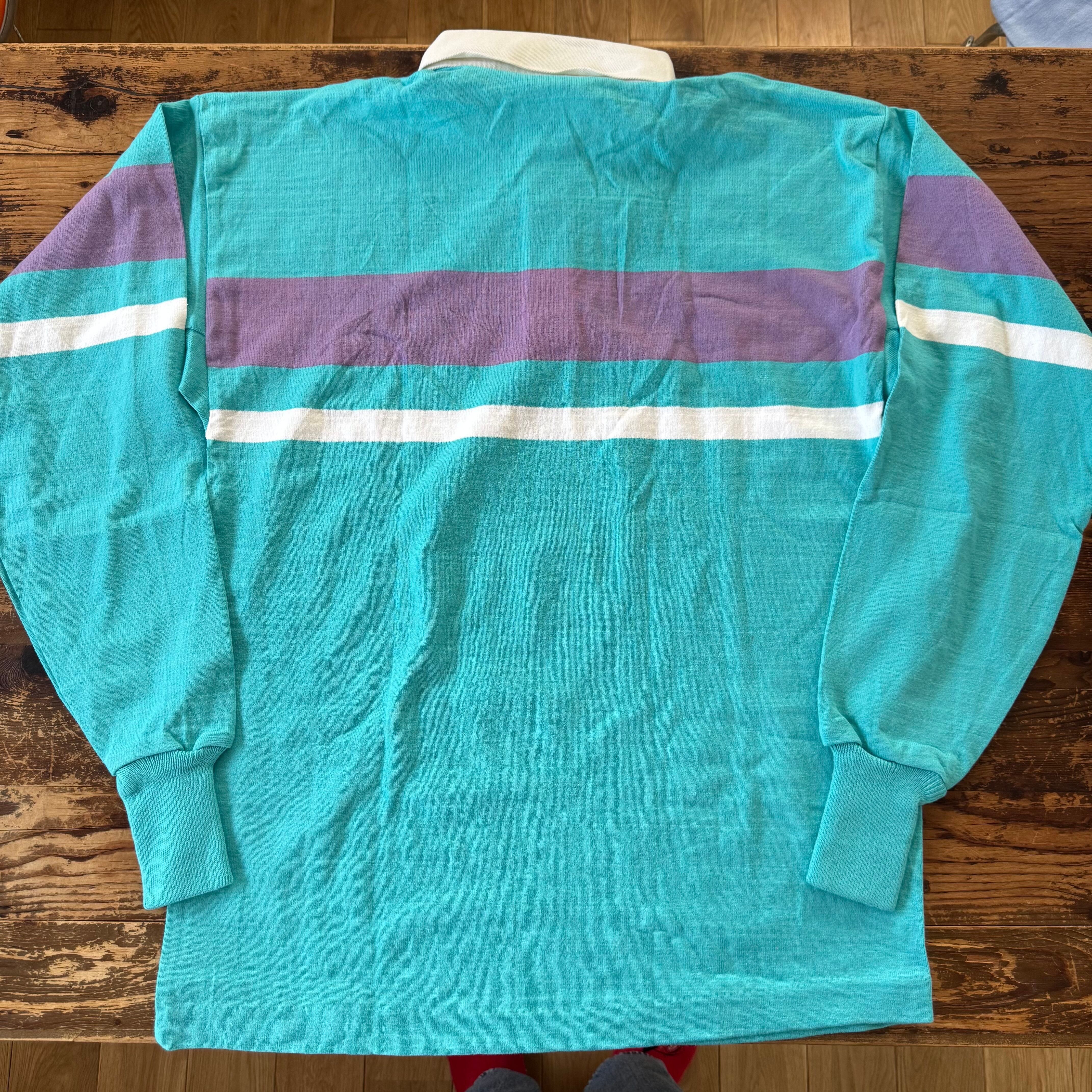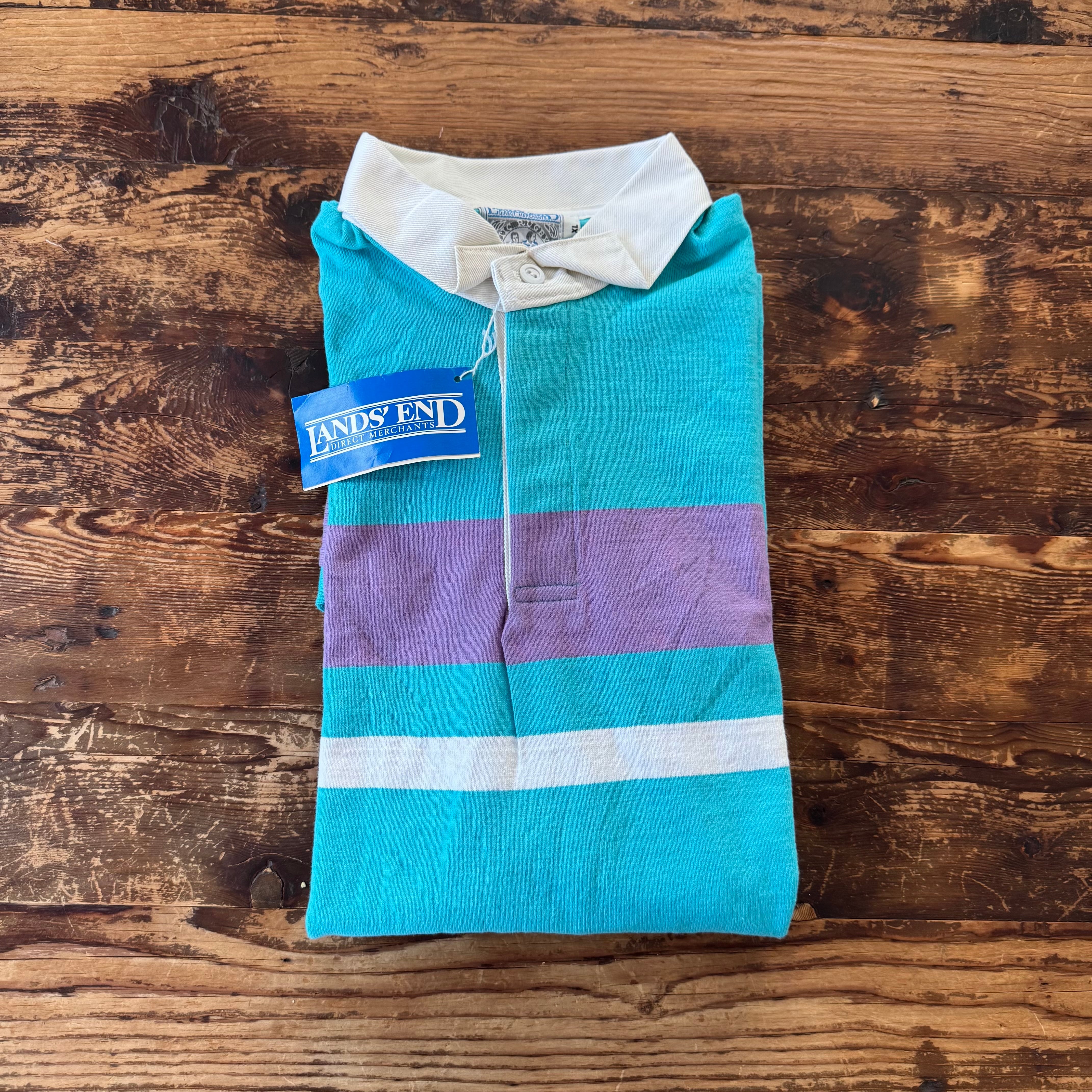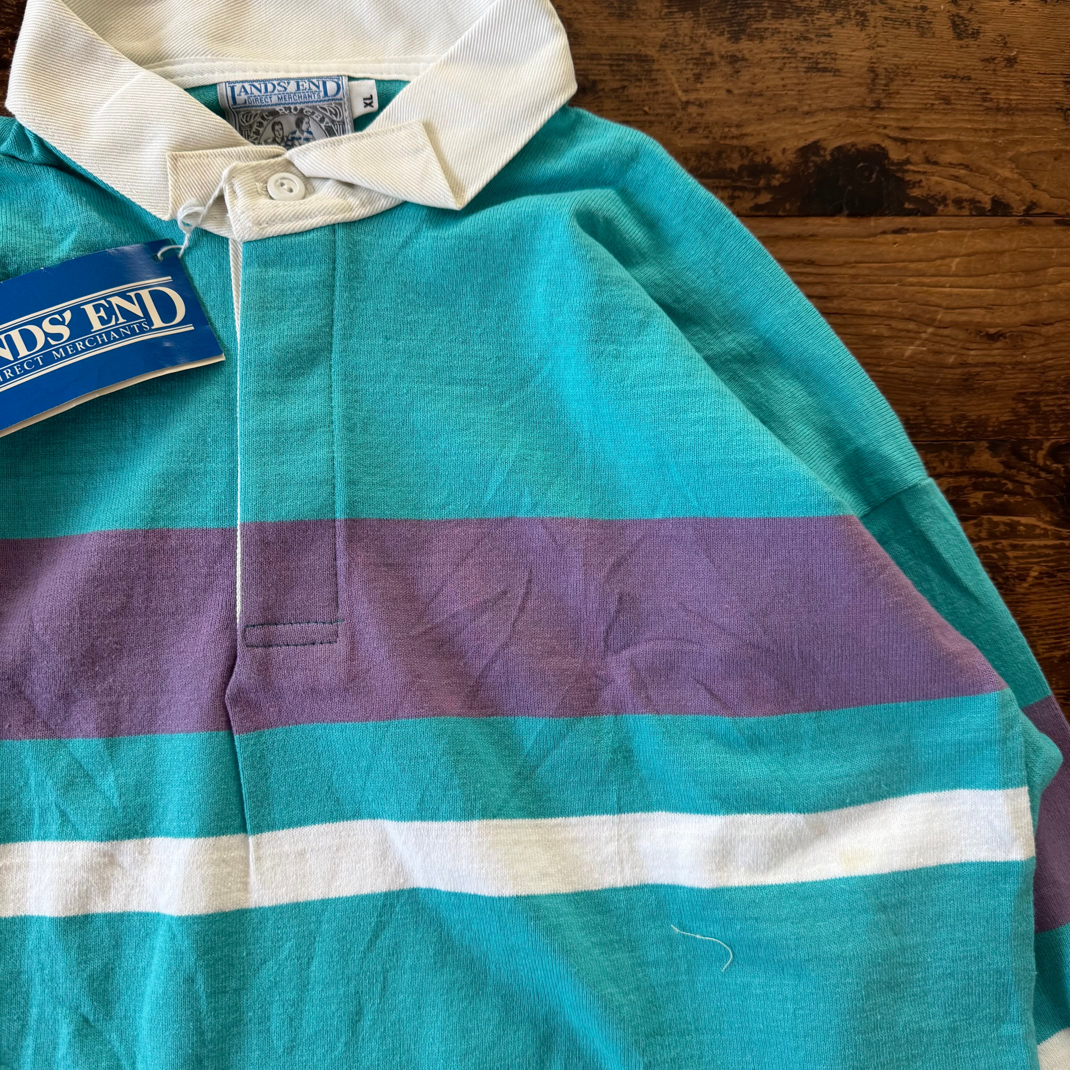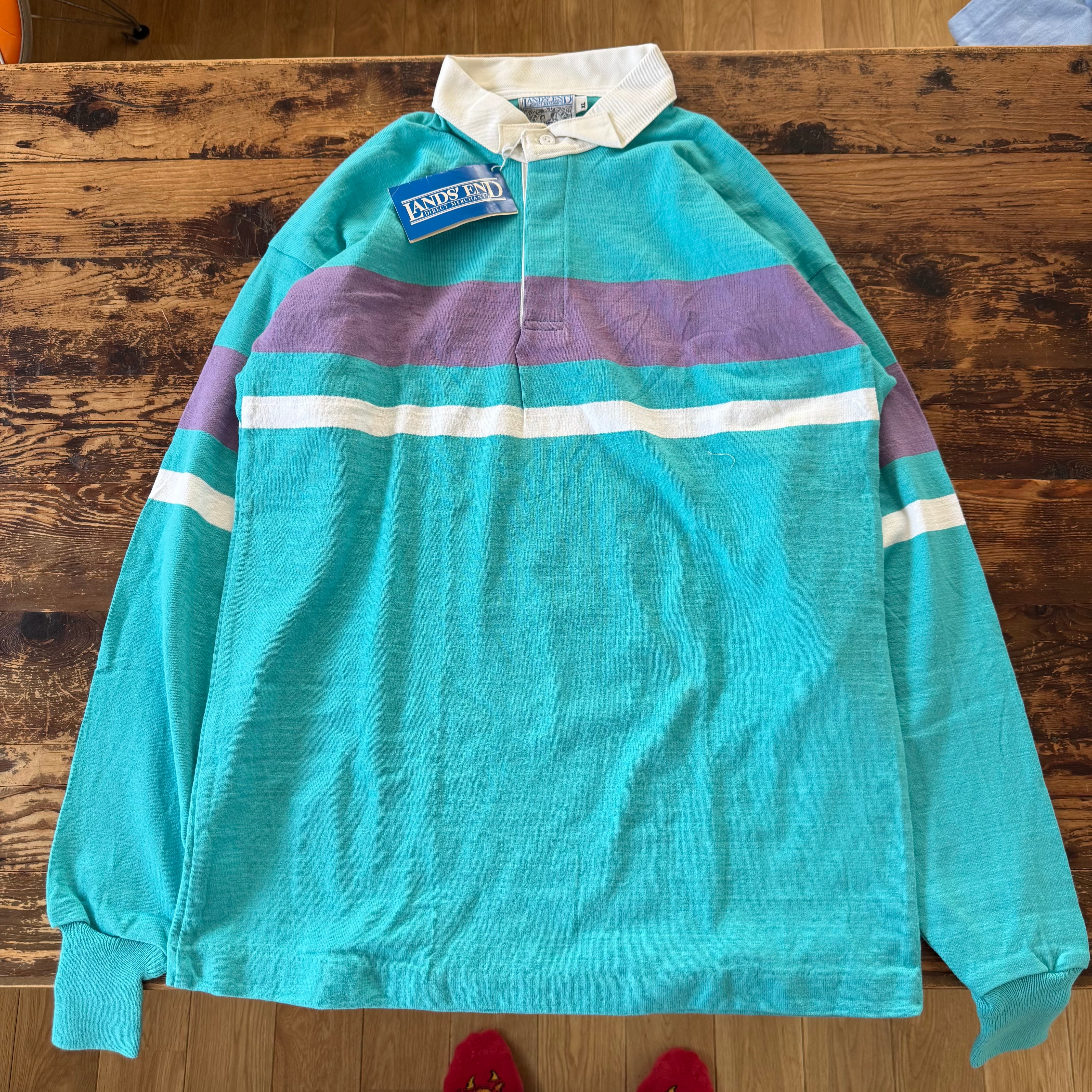 1990's Deadstock "LANDS' END"Rugby Border Polo Striped SHIRT/XL