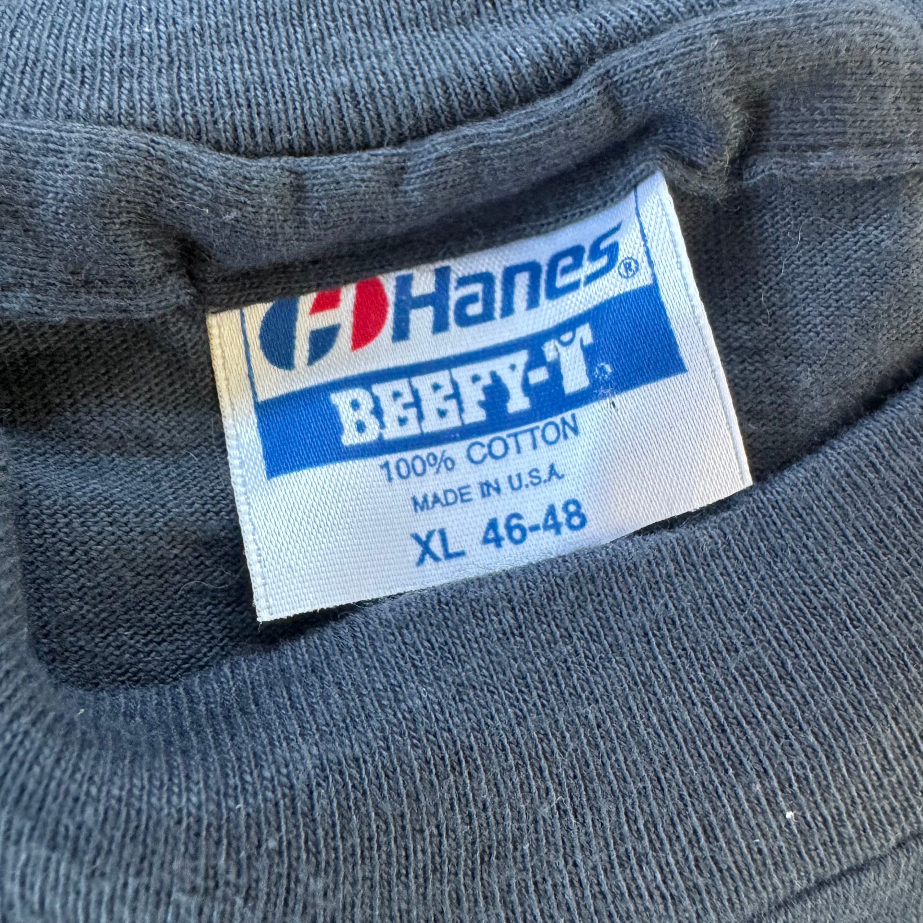 ちょっと珍しいヘインズのBeefyボディが使われている一枚で、このしっかりとしたコットンの生地、このブラックが良いんです。フェイドしていった時に生まれる、後年のものとは一味違った風合いで。抜群にいい表情を見せてくれます。着心地も最高。