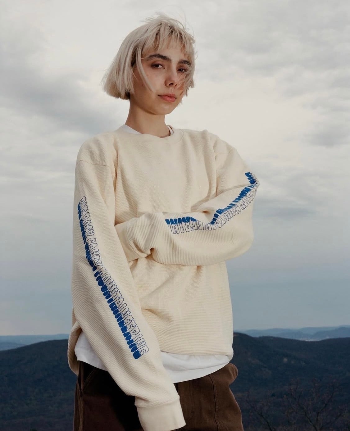 ほどよく厚みとヴォリュームのある、中厚手の綿100%ニット素材を使用し、保温性と通気性の絶妙なバランスを実現。重ね着にも一枚でも着用できます。袖のグラデーションロゴがいいアクセント。