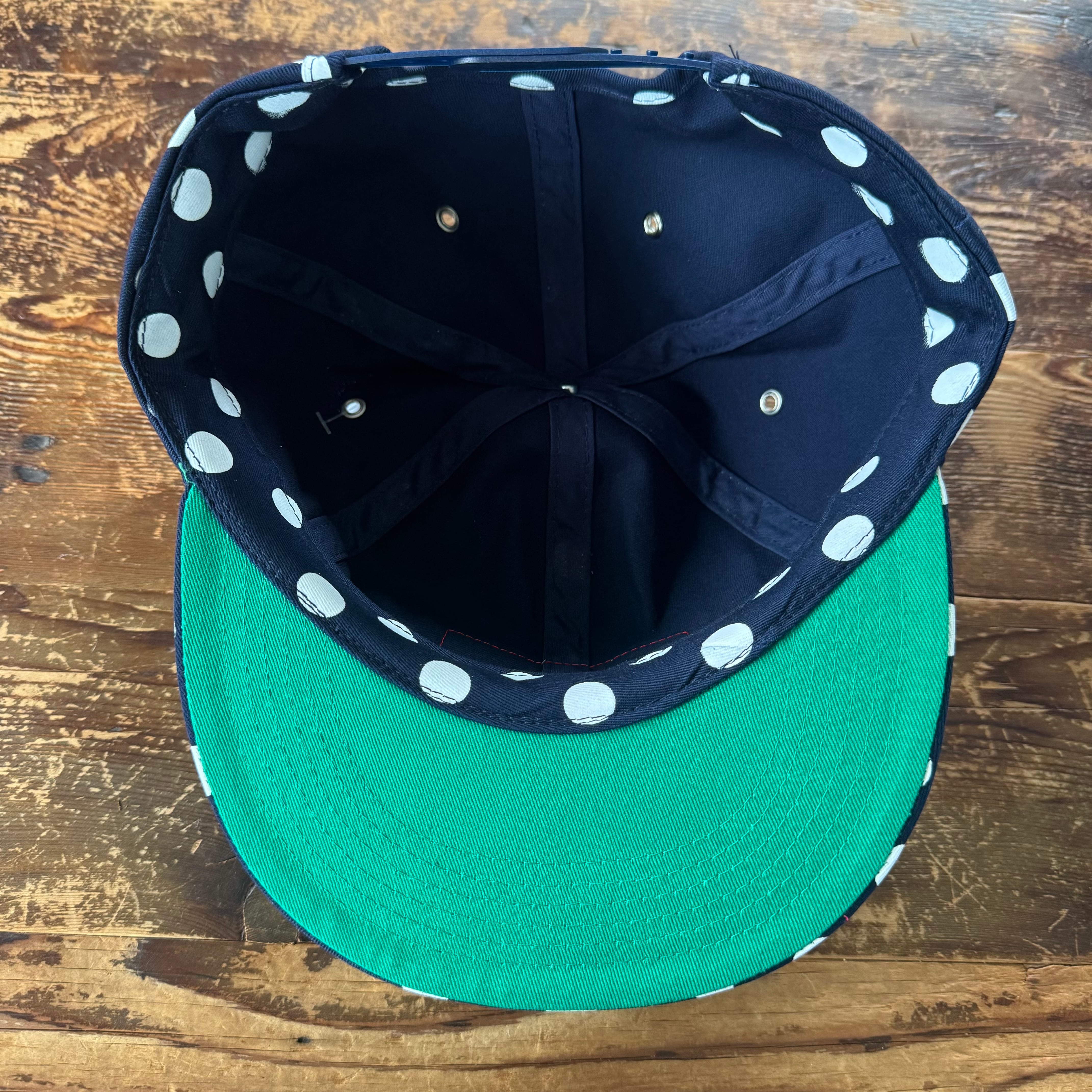 つばの裏のグリーン生地がまたなんとも...