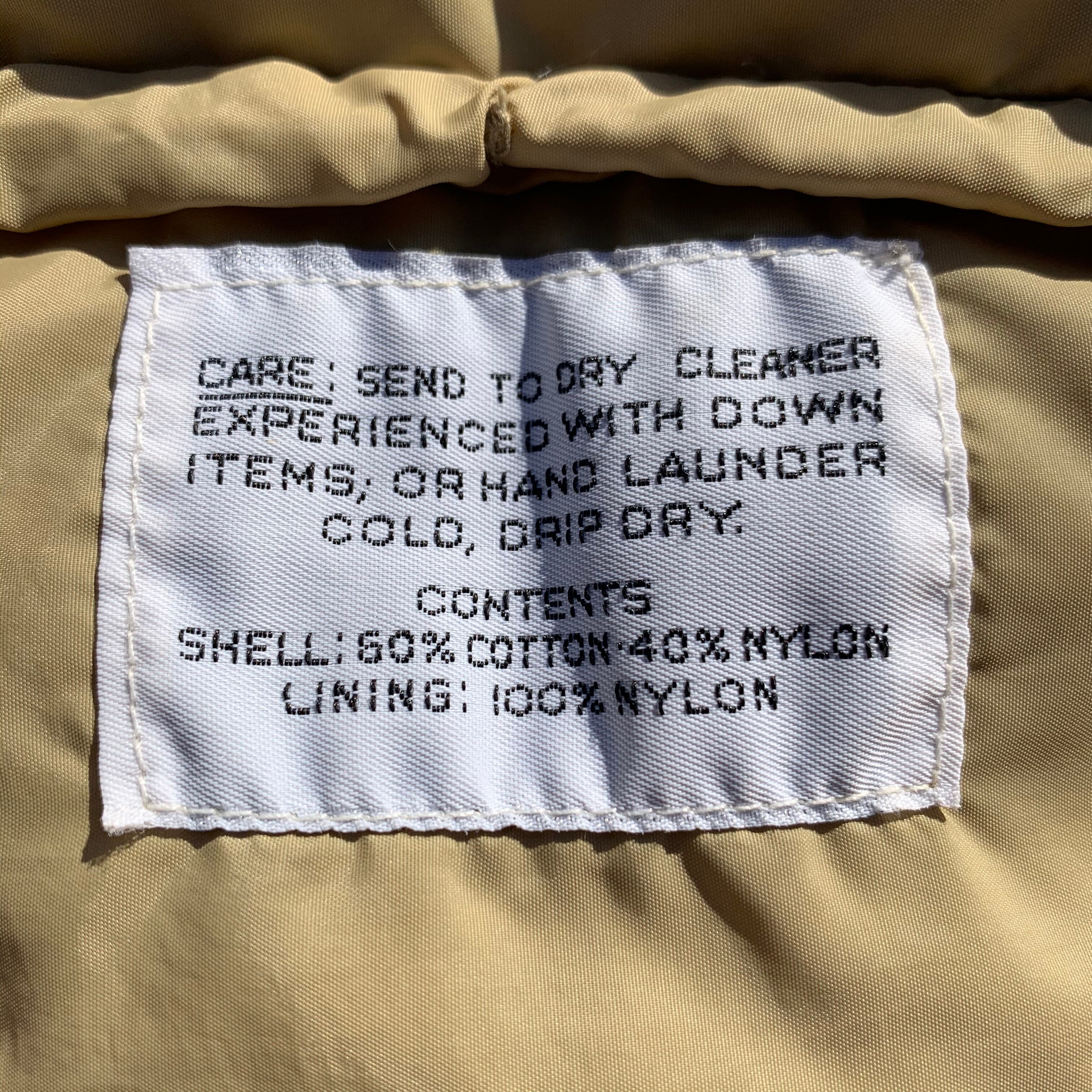 マウンテンパーカと同じ 60% Nylon 40% Cotton 所謂「ロクヨン」のアウターシェルに、同じ時代の他社製品と比べて、長めの着丈と、マス目状の縫製から、一目でそれとわかる、時代を超えて愛される名品で