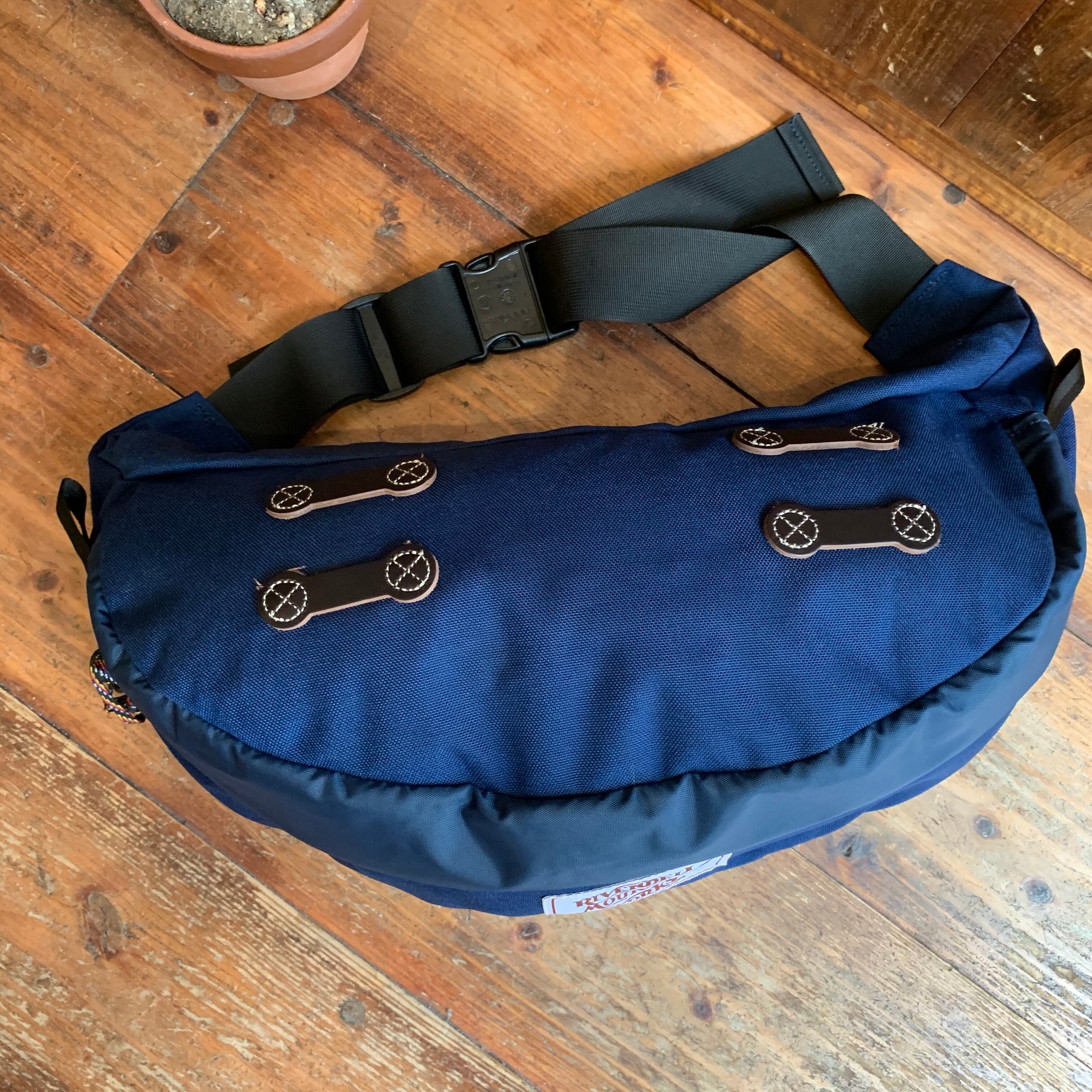 こちらのLサイズはウエストバッグとしてはかなり大きめで、物を詰めるとデイパックくらいの大きさになります。その規格外とも言える”デカさ”がなんとも言えず、可愛らしいです。笑 かといって扱い難いかと言えばそんなことは無く、しっかり体に沿うよう設計されているのでフィット感も抜群で、実用性も申し分なし。身につけるだけでヴィンテージ、アウトドアの雰囲気たっぷり。