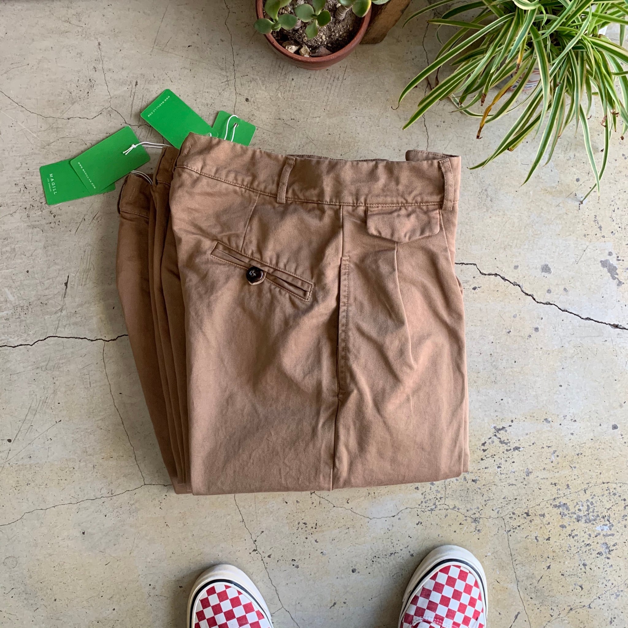 MAGILL Los Angeles // HARRIS GARMENT DYED PLEATED CHINO - BRITISH KHAKI