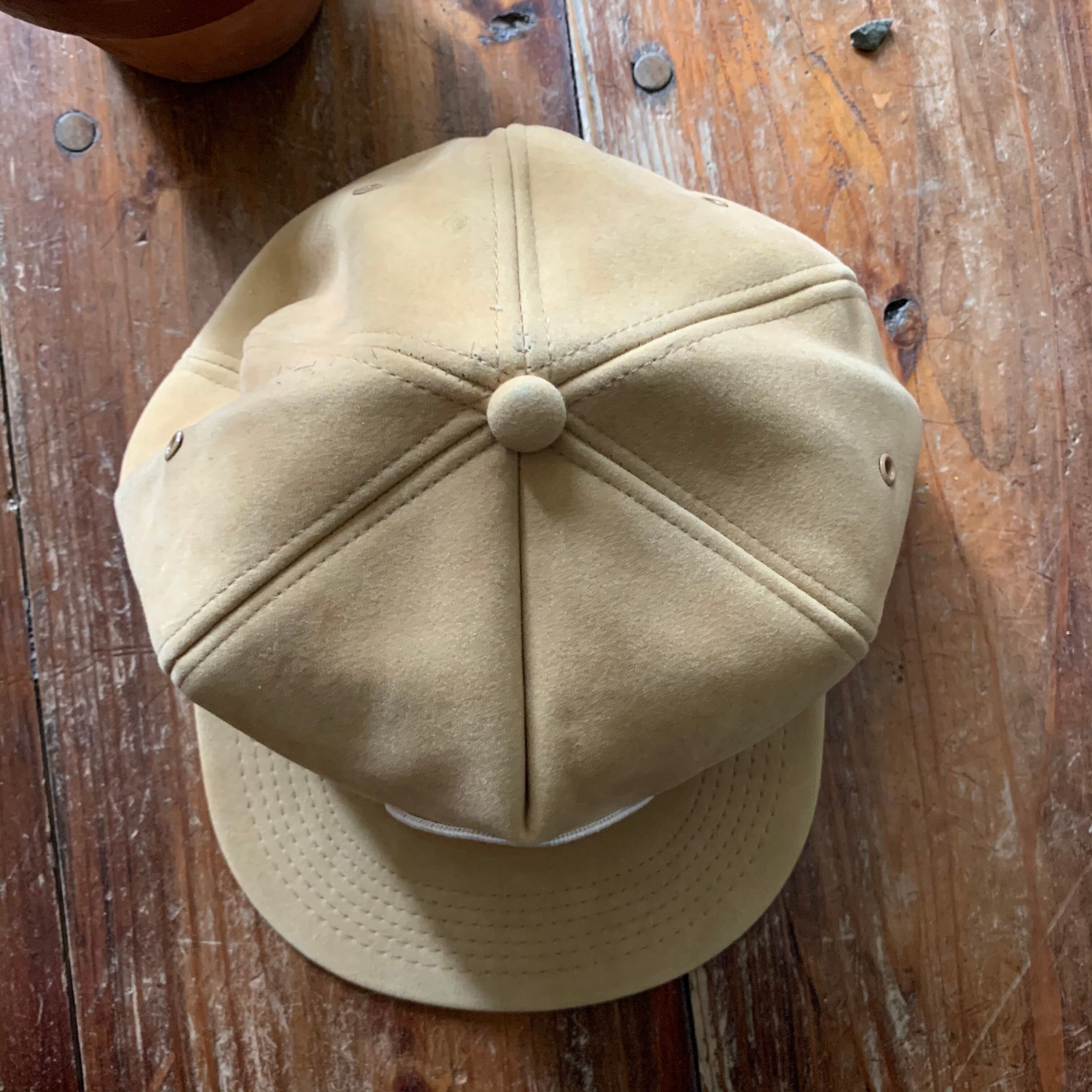 この種のキャップの中では特に珍しいコットン・スウェード素材で、温かみのあるサンドベージュは優しい印象。このタイプ特有の少し厚みのあるバイザー、被るとボリュームのあるルックスも特徴的です。パッと目をひくロゴ、パッチとのバランス、色合いも素敵です。
