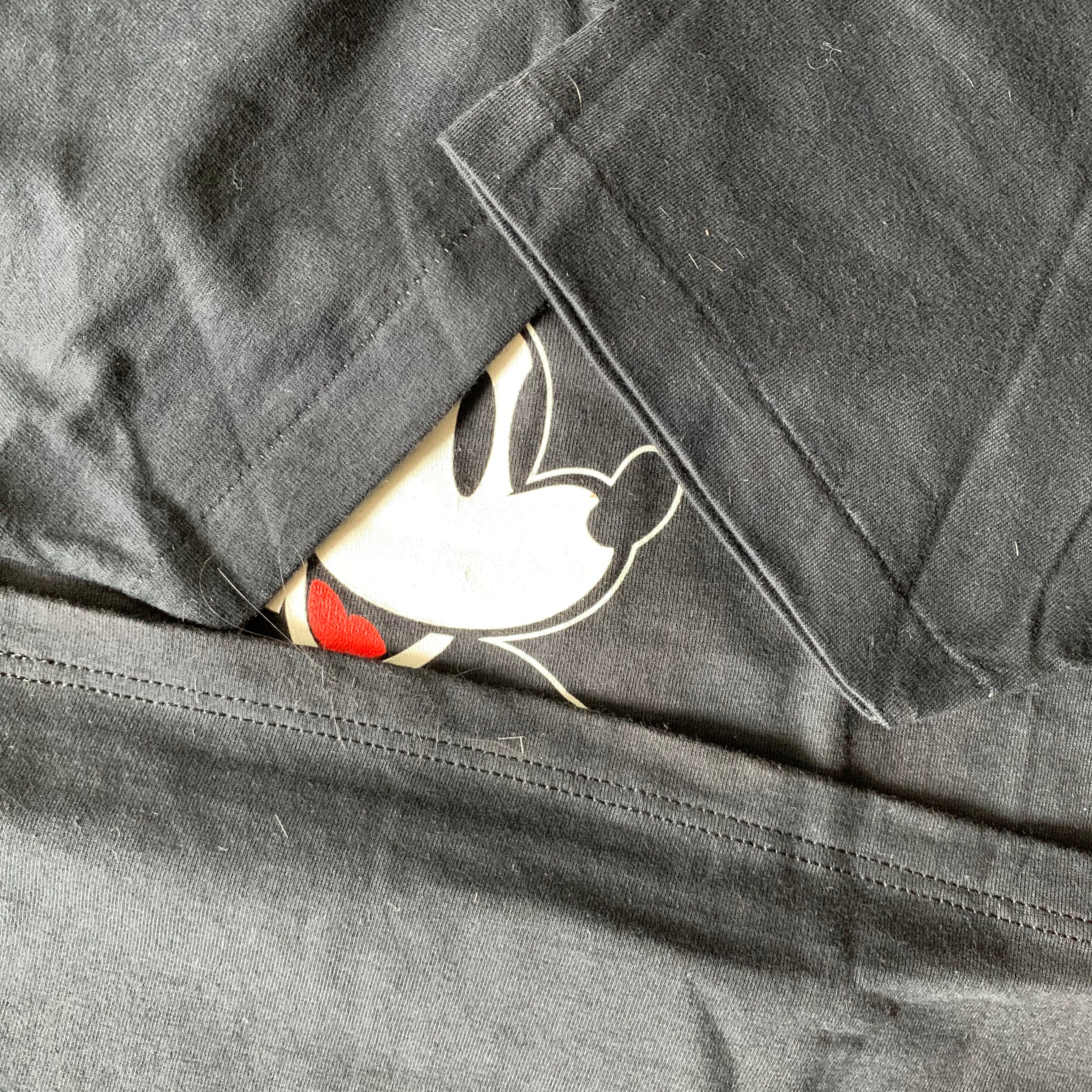 ディズニーランドの土産物でとして売られていたTシャツとしては80−90年代にかけて流通していたのがこのボディ。このしっかりとしたコットンの生地、このブラックが良いんです。
