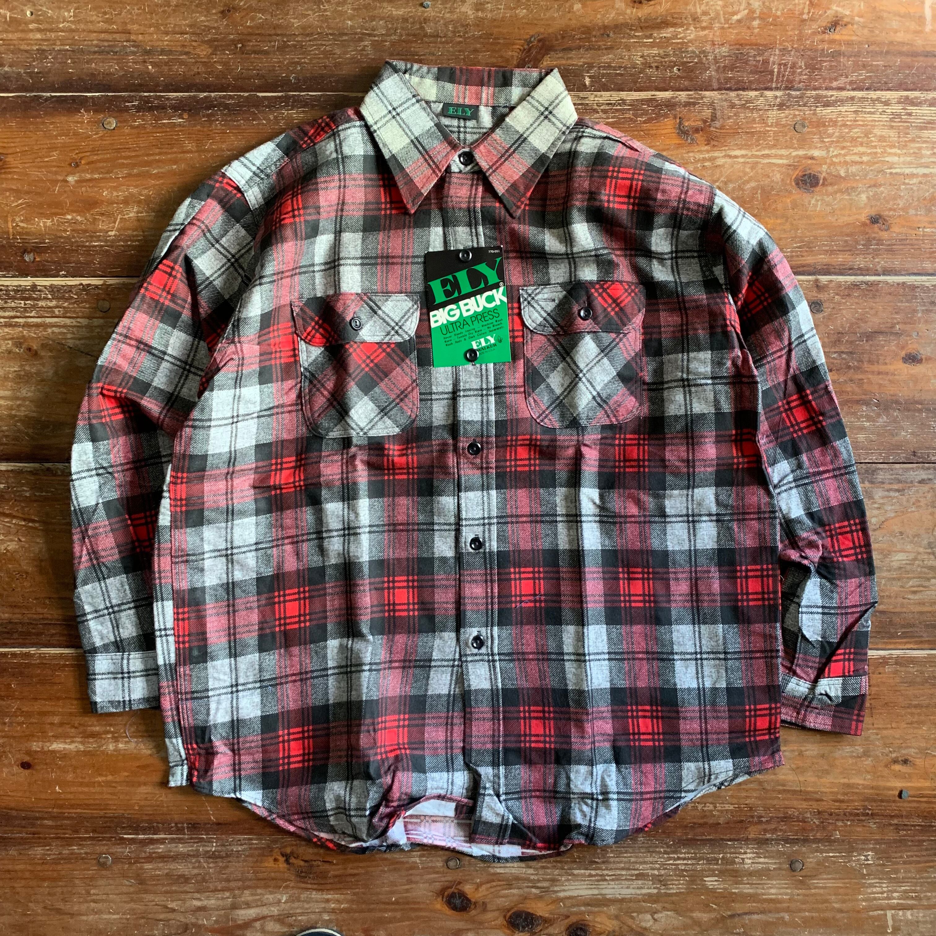 1970’s Deadstock “ELY” Print-Flannel Shirt/ L/Red