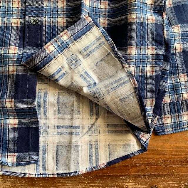 元々は白い生地に色柄をプリントする事で作られるこの所謂『プリントネル』は着込んで、洗濯して を繰り返していく事で、少しづつ色褪せしていくのが特徴で、着れば着るほど、とても古着らしく、味わい深いモノになっていきます。腕をまくったり動いて裾が裏返ったりした時にチラッと覗くプリントの裏面。