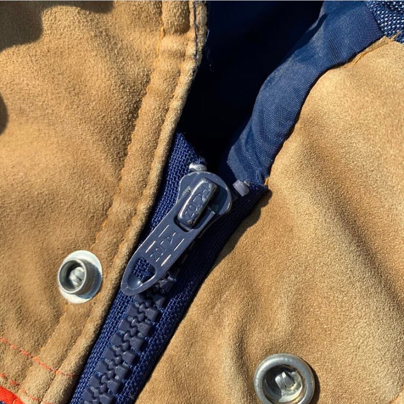 見た目にも大きな特徴である、ヨーク部分はスウェード(人工皮革)に、基本的にはトラッカージャケットのディテールを踏襲していますがポケットにはTalonジッパーを採用していたり、長めに着丈が取られていたり、あくまでアクティビティ前提の理に適ったデザインと言えます。