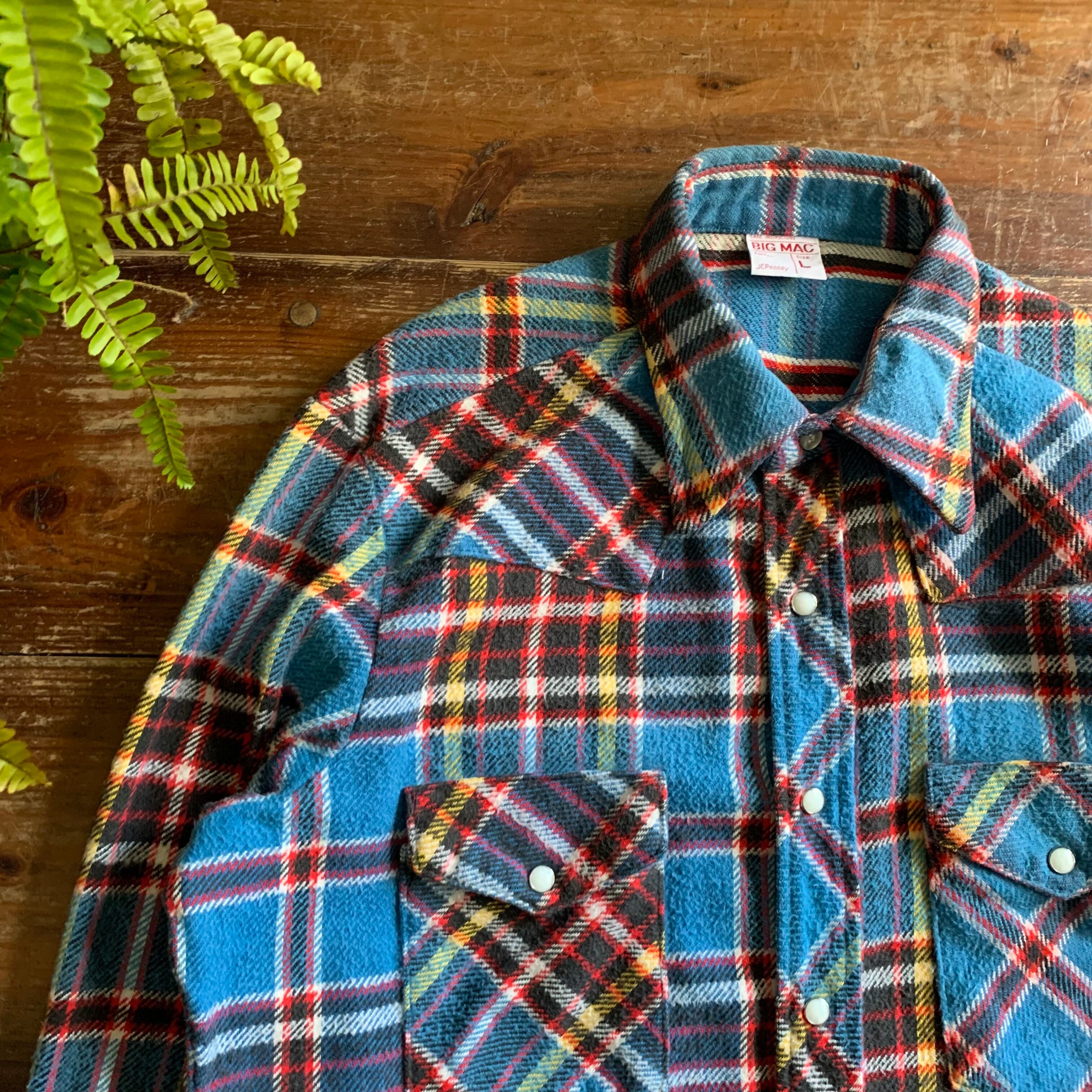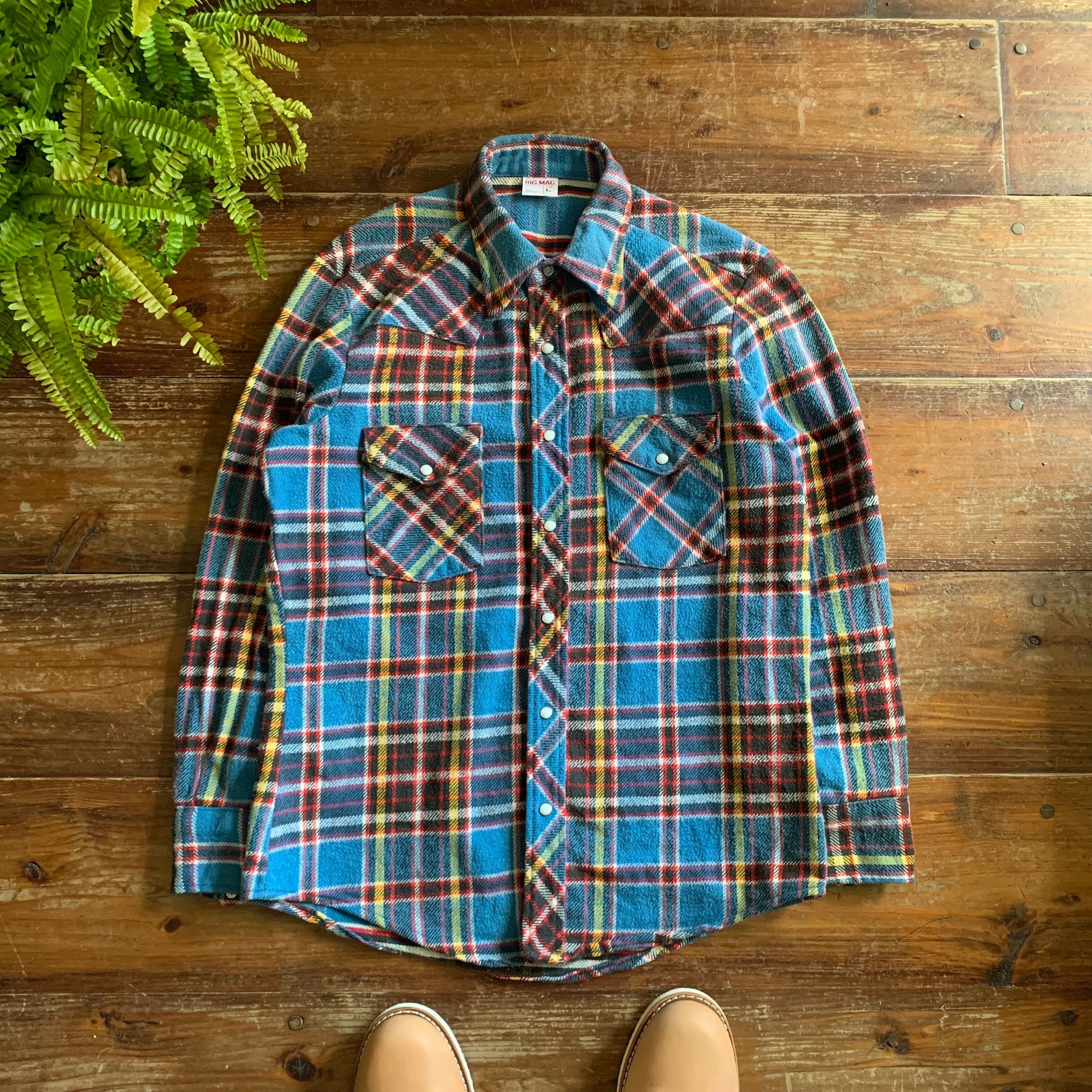70's "BIG MAC" Heavy weight cotton flannel western shirt/L