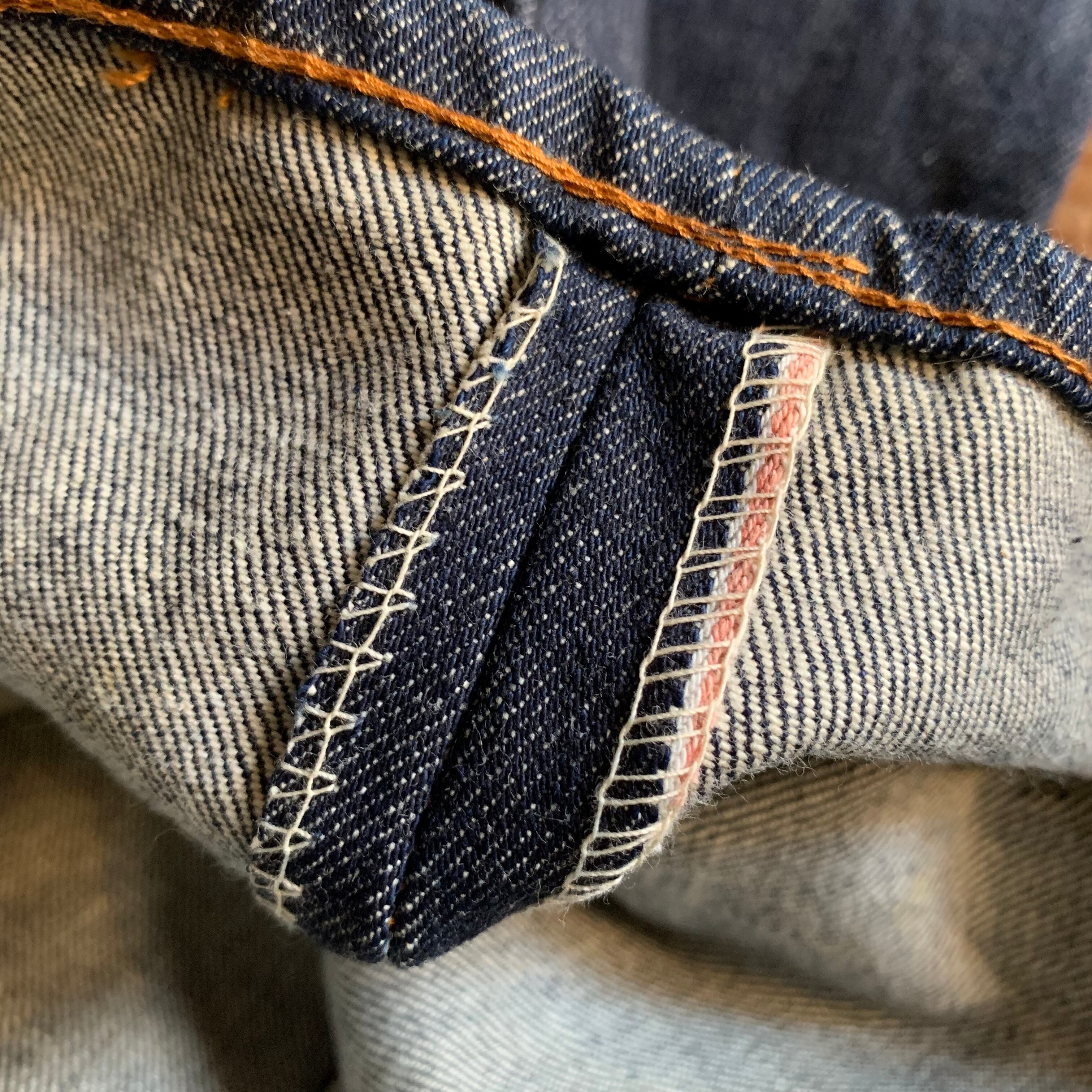 ヒップポケット裏はシングルステッチで、501で言うなら『66前期』ごろの個体。内側の紙タグからは1975年製と推測できます。これ以降の時代に作られたものとはデニムの雰囲気がまた全然違いますね。ヴィンテージならではの深いインディゴの風合い、濃淡のついた所謂『良い色落ち』が期待できそう。裾付近に赤耳のセルヴィッジが見られるのも珍しく唯一無二の一本と言えます。保存状態も良好で、サイズバランスもよく、お探しであった方には強くおすすめできます。