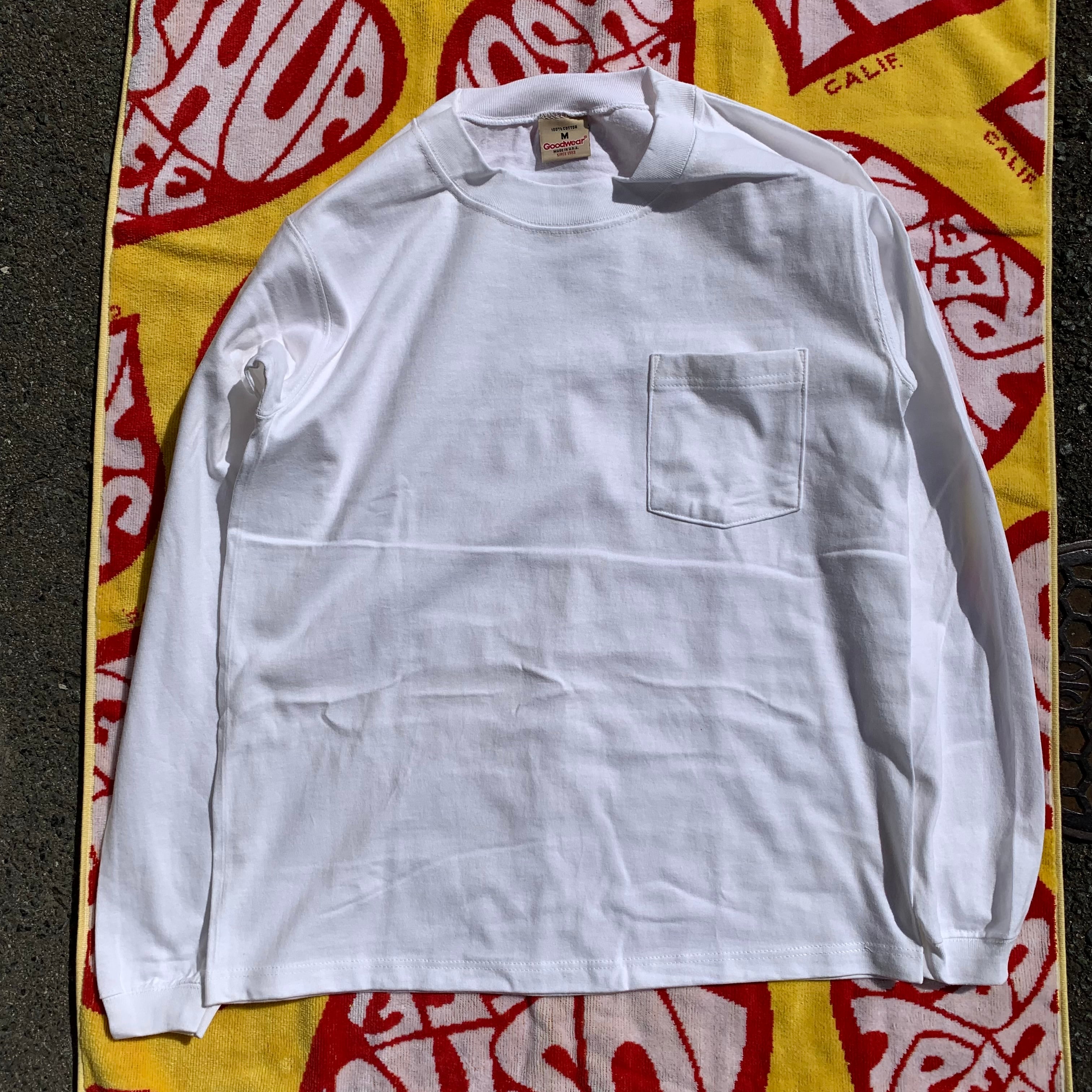 Goodwear USA made Long sleeve Pocket Tee/ WHT/ S/M/L/