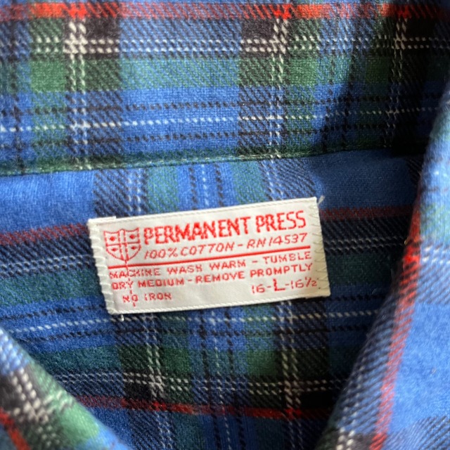 タグに "PERMANENT PRESS"と素材表記だけが入るこのブランド。どちらかと言えばマイナーですが、70年代には当時らしい、多彩な良いネルシャツを作っていた会社です。