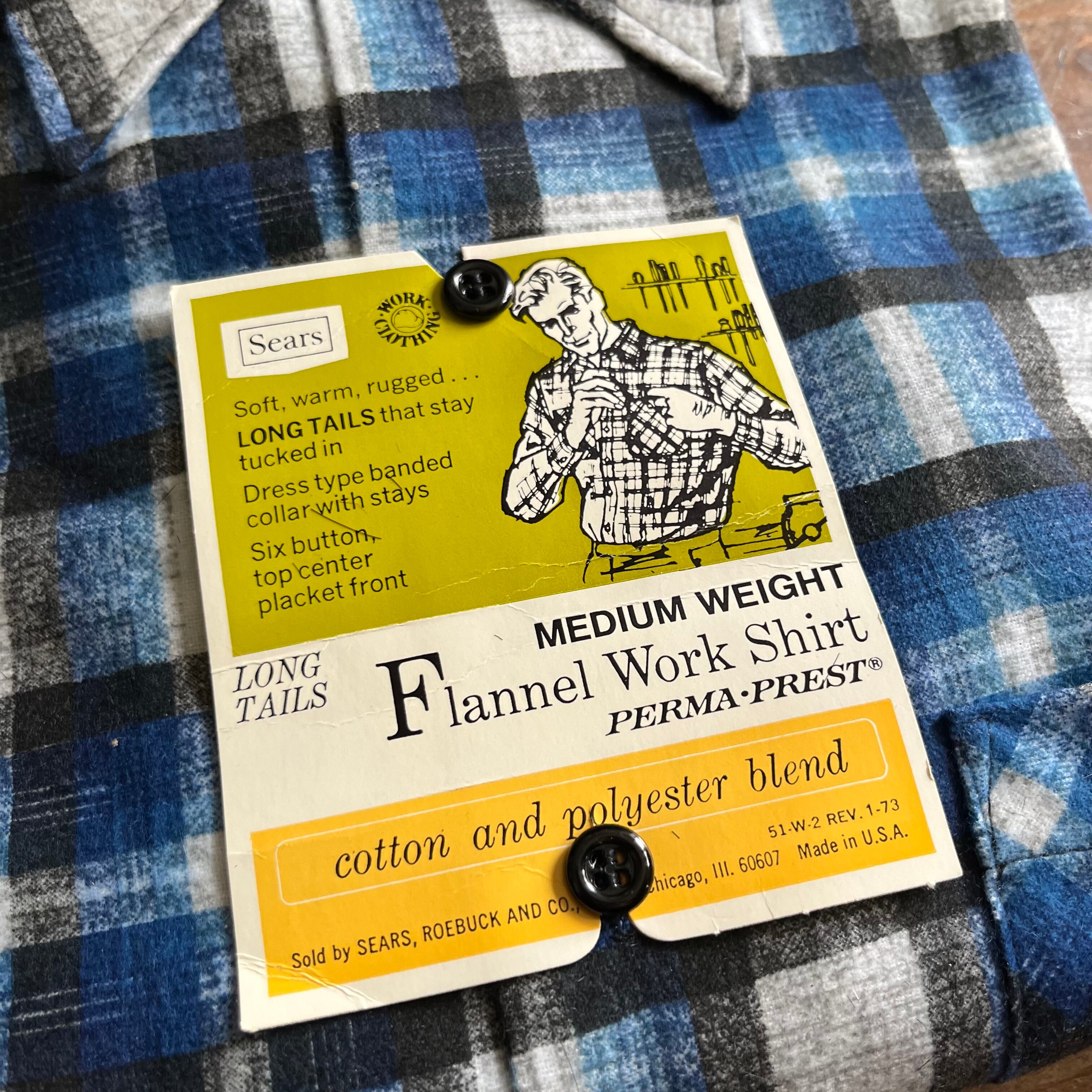 1980's Deadstock Sears Print Flannel Work Shirt/ Blue, Grey