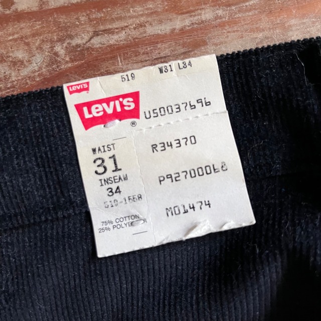 1980s Deadstock “Levi’s 519-1558”/ Straight Leg Corduroy/ Black