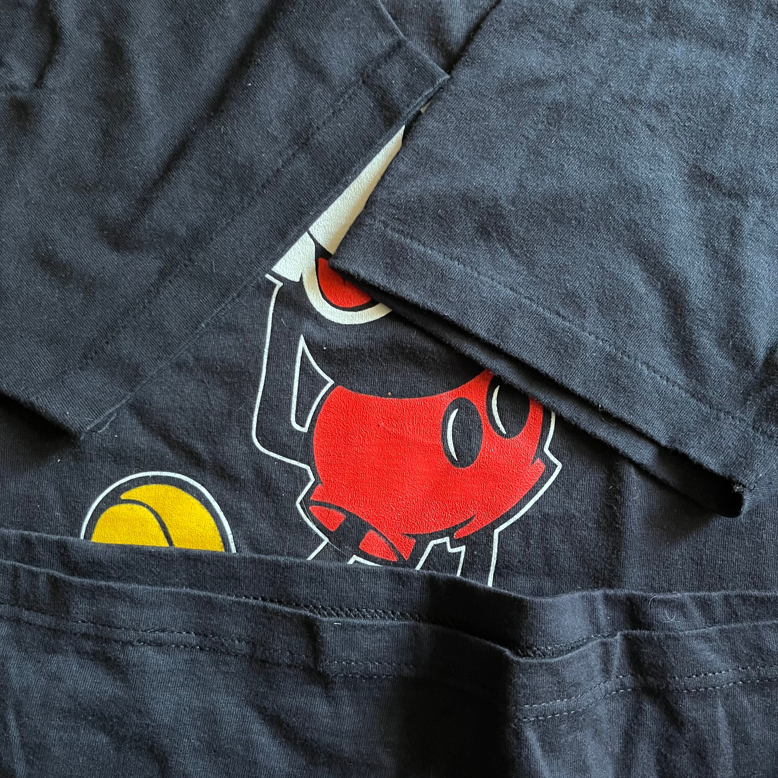 ディズニーランドの土産物でとして売られていたTシャツとしては80−90年代にかけて流通していたのがこのボディ。このしっかりとしたコットンの生地、このブラックが良いんです。