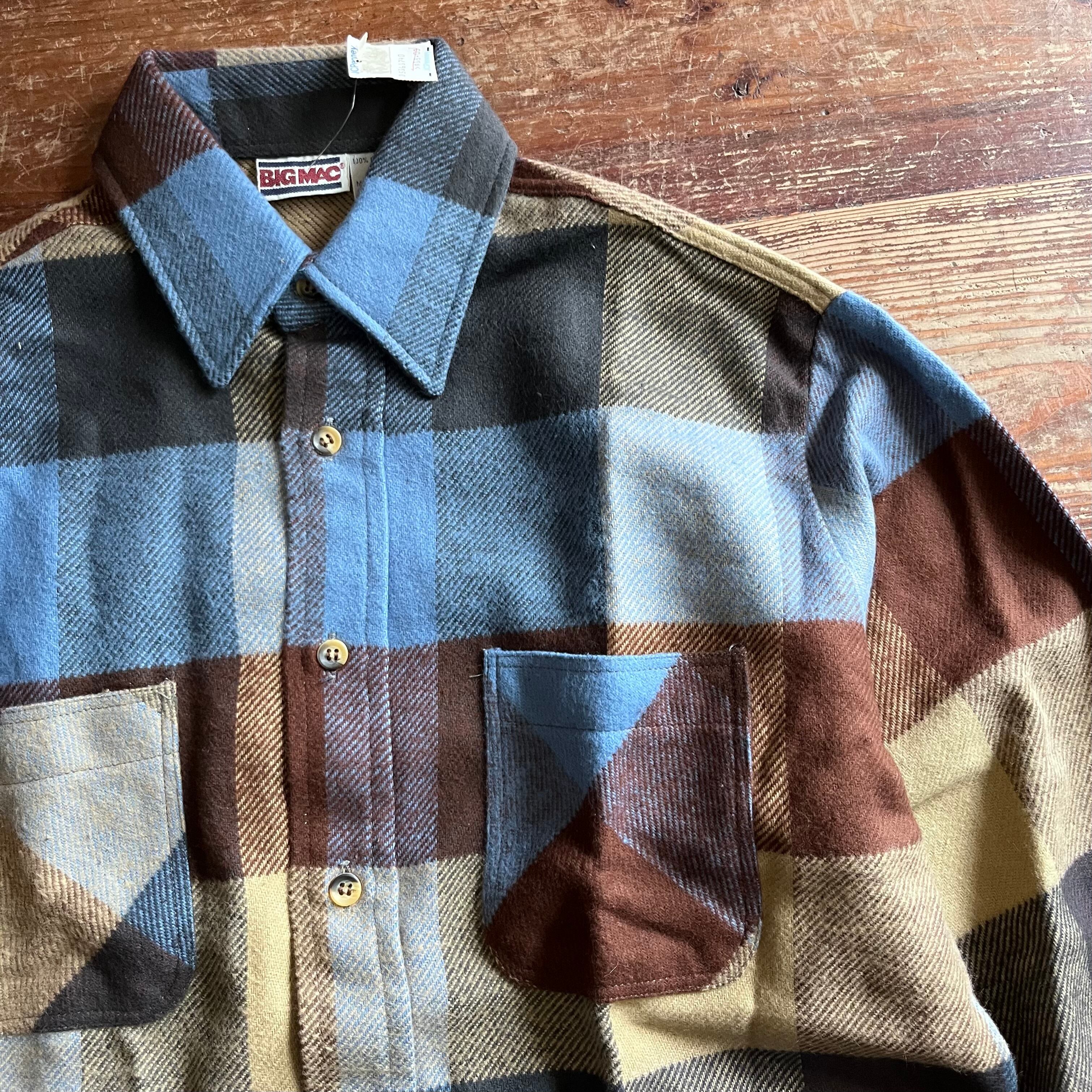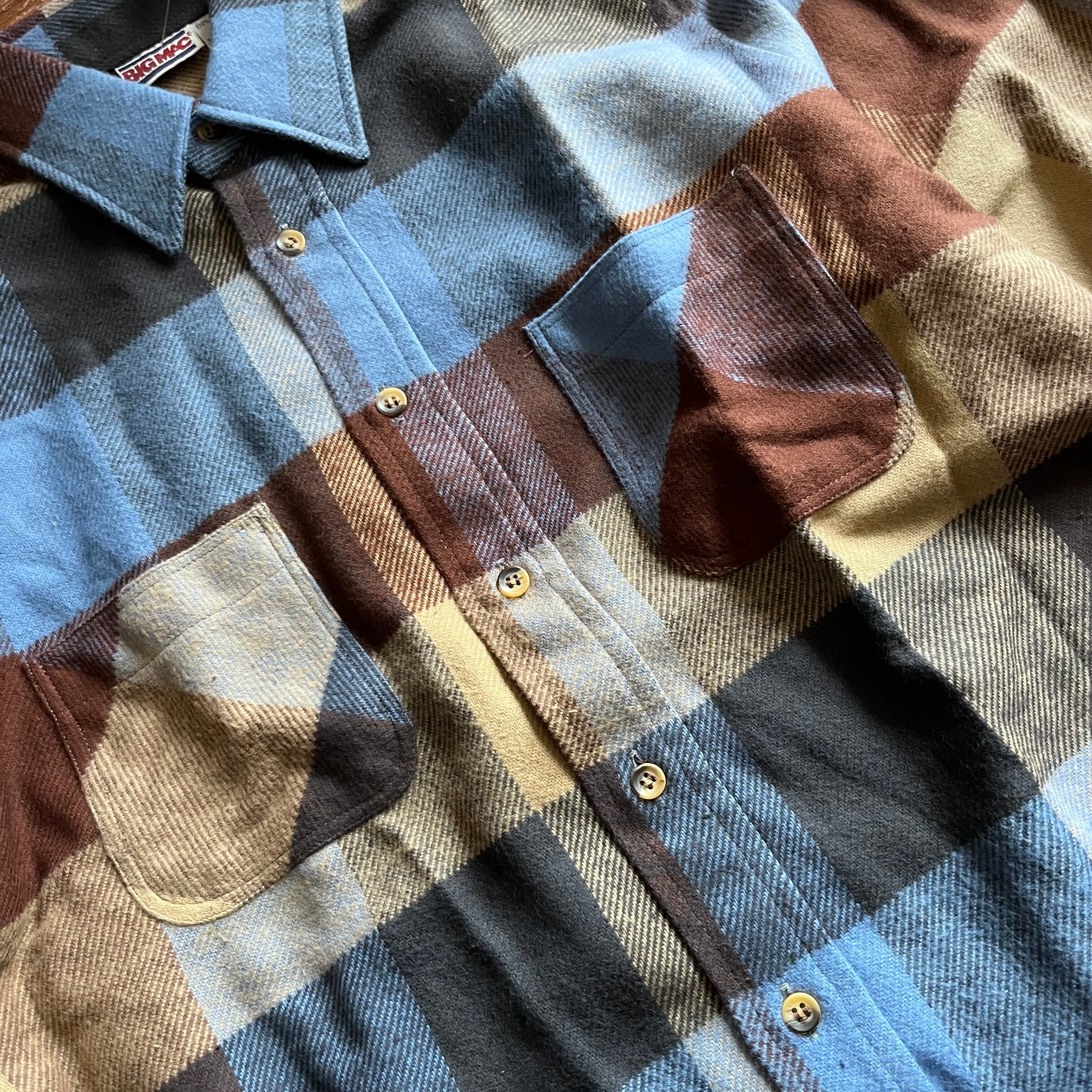 1980’s ”BIG MAC” Cotton Heavy Flannel Shirt/Brown/Lt.Blue/Beiget/M