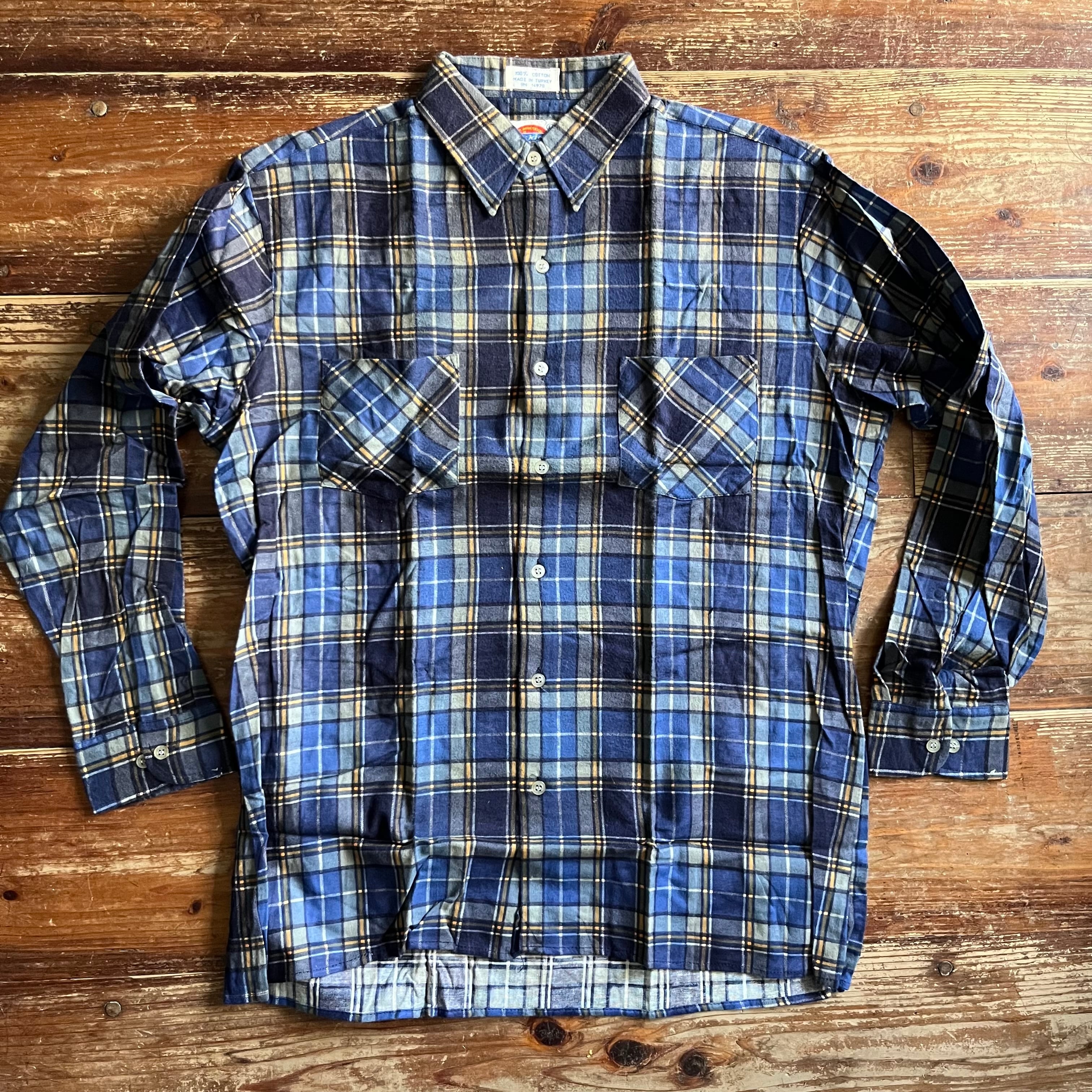 Circa 80's Deadstock "Dickies" Printed Flannel shirt/L/Blue, Navy