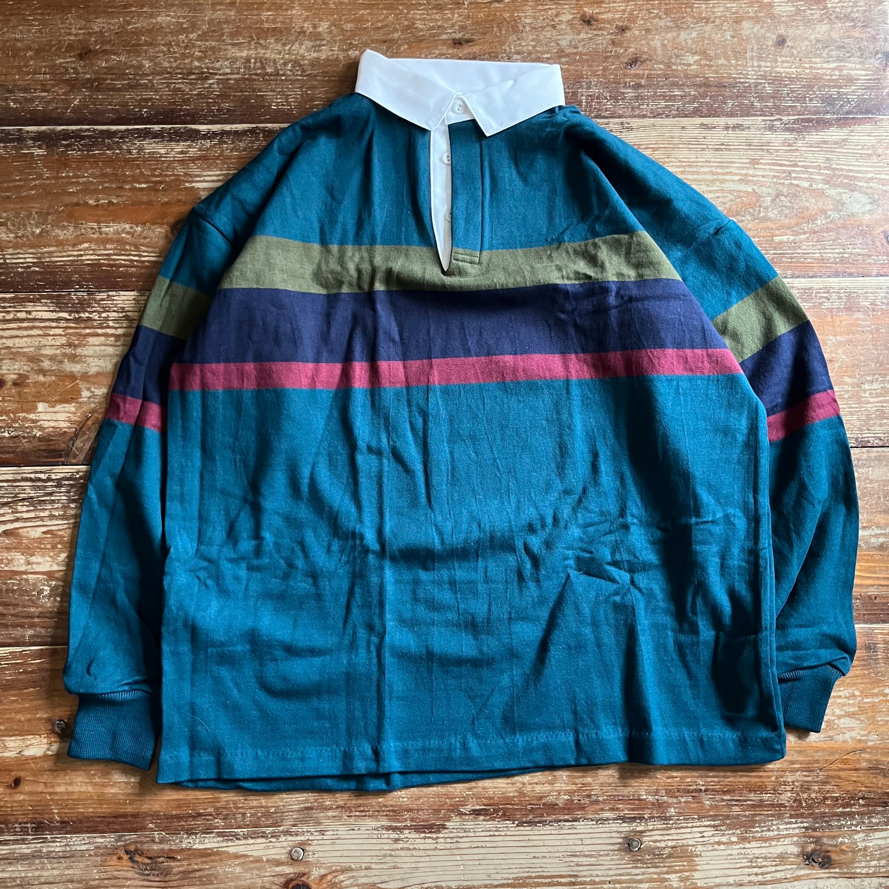 1980's DEADSTOCK L.L.Bean Striped RUGBY SHIRT Made in USA/Teal Blue xNavy/XL