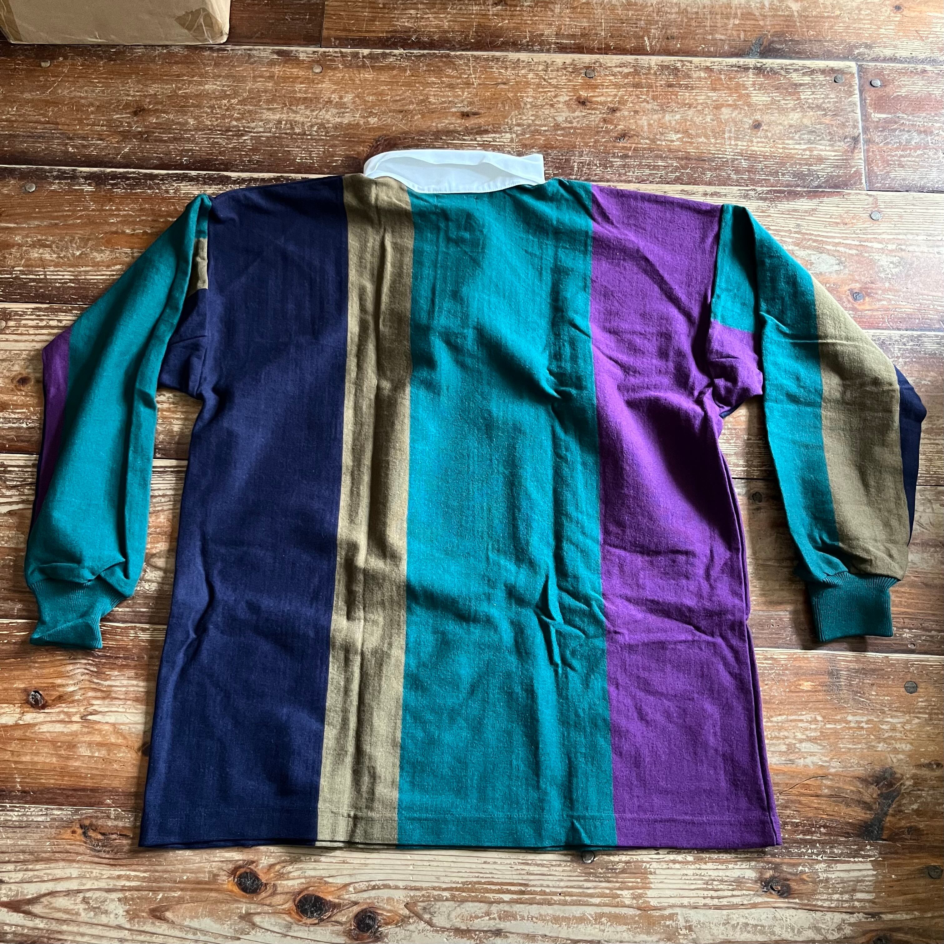 1980's DEADSTOCK L.L.Bean Striped RUGBY SHIRT Made in USA/Olive xGreen/XL