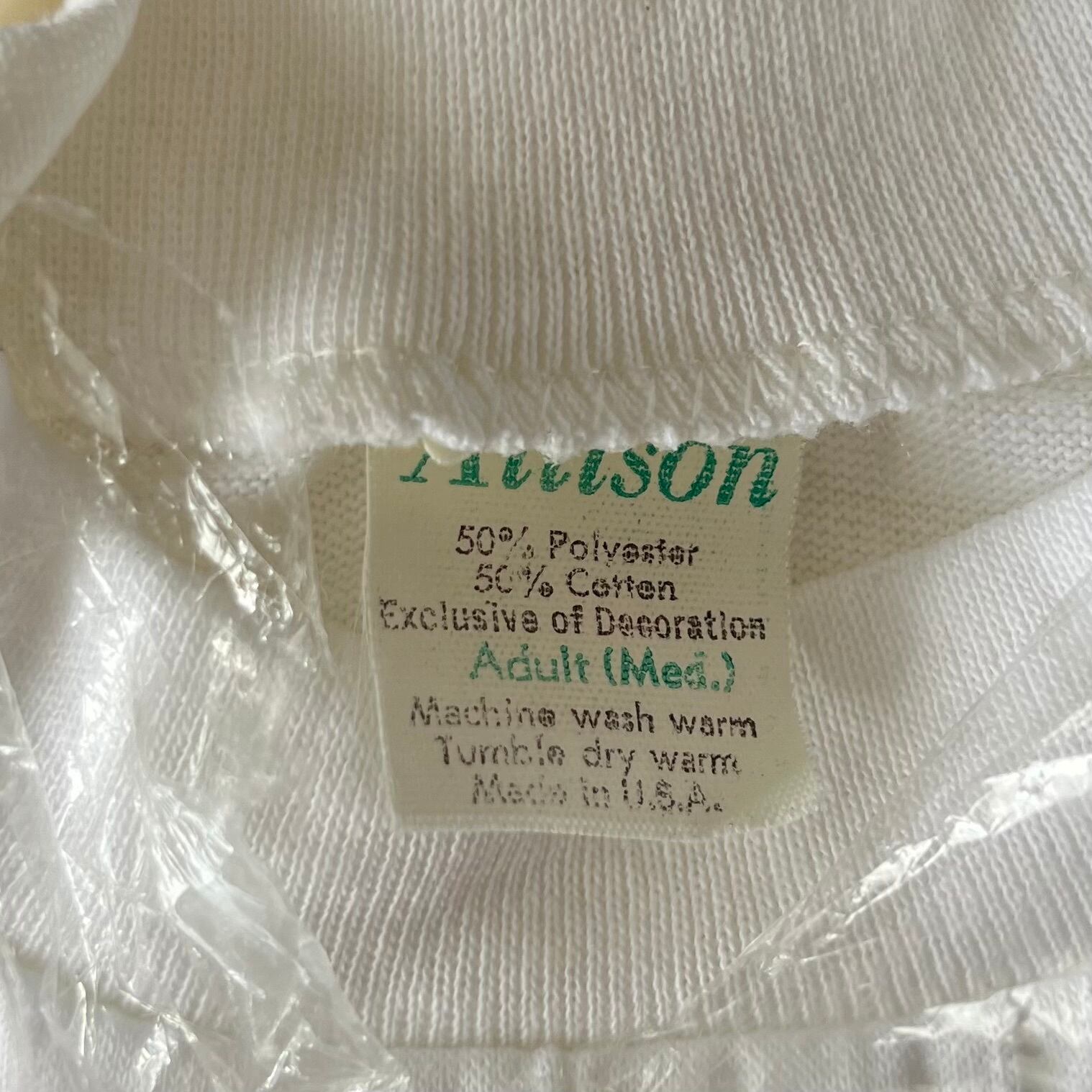 ディズニーランドの土産物でとして売られていたTシャツとしては初期の、ミッキーが白い靴を履いた『Allison』社の製品。ミッキーのグラフィックは、水性インクの染込みプリントとなっており、このプリントが雰囲気抜群でフェイドしてきたときには後年のものとは一味違った抜群にいい表情を見せます。ボディの使われている綿ポリのボディも現代のTシャツには無い(言葉では表現しにくですが)非常に味のある風合いとなっています。