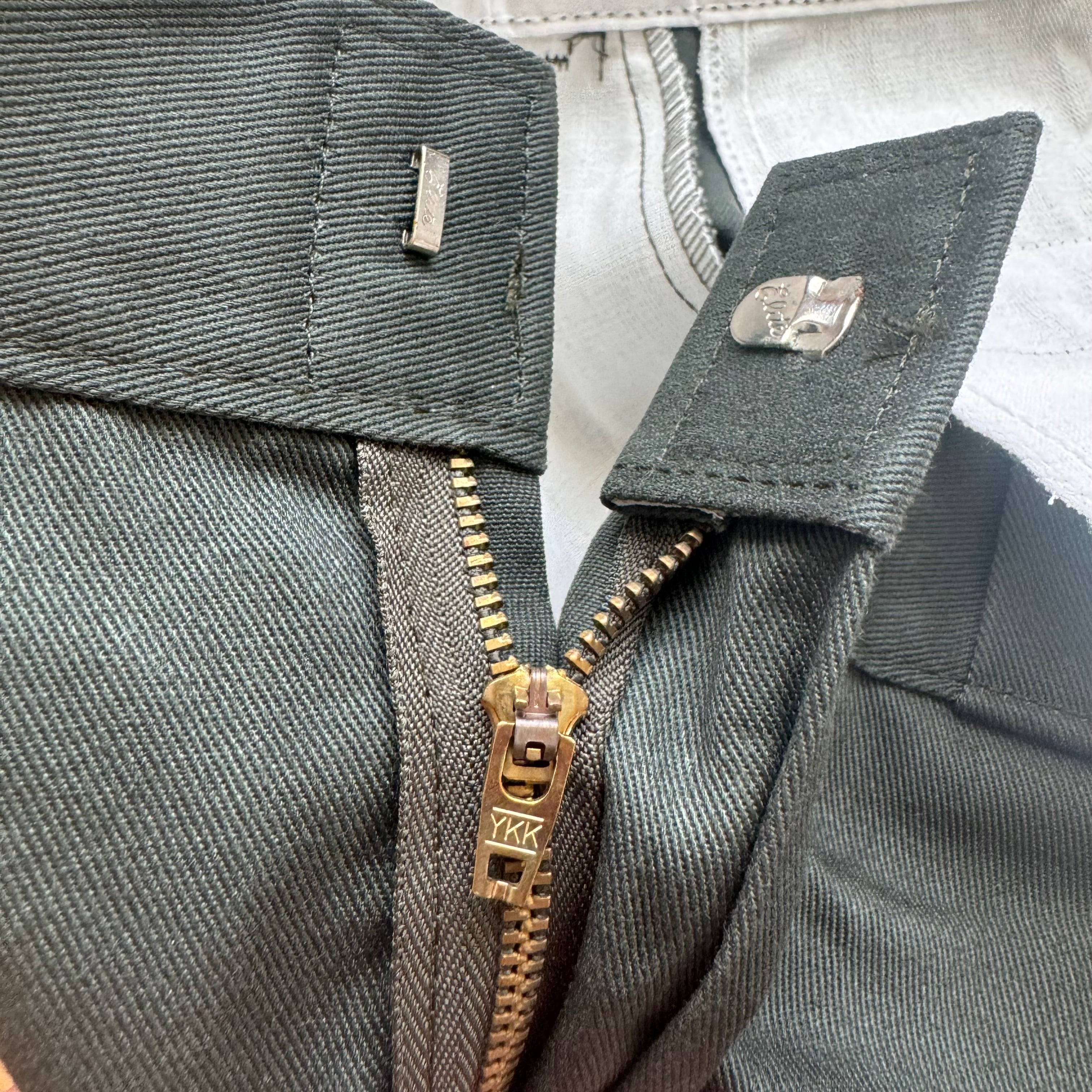 90年代以降のメキシコ、ホンジュラスなどの他国の工場生産のモノと比較して、たっぷり目にとられた股上と、太過ぎず細過ぎない骨太なテーパードシルエットは米国産ならではの特徴です。