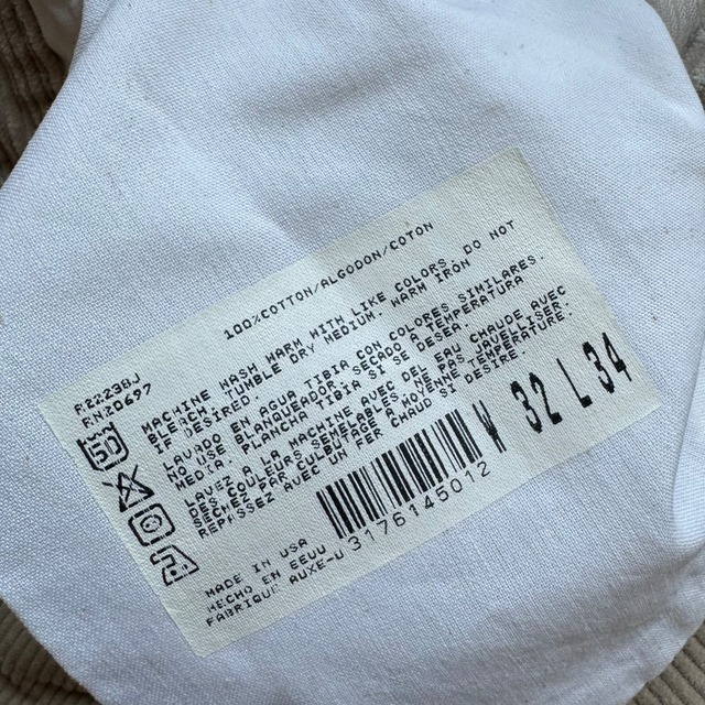 一般的な874とディテールはほぼ同じですが、フロントはTalonジッパーにトップは掛けボタンを採用。お馴染みのバックタグも素敵です。とにかく米国産らしい乾いたコットンの感じがたまりません。